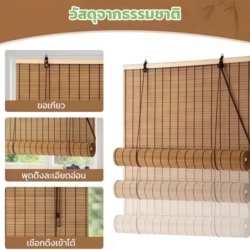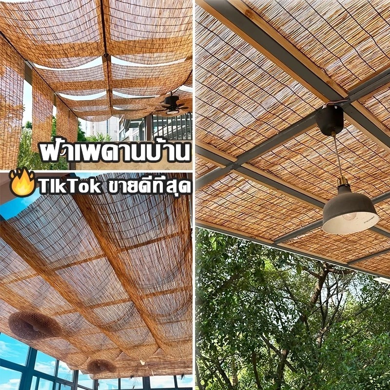 ม่านกก ม่านม้วนงแดดไม้ไผ ม่านฟางตกแต่งโรงแร สามารถยกสำเร็จรูป นผนังกันน้ำและกันแดด ชีวิตธรรมชาติ สตั๊ดติดผนังฟรี