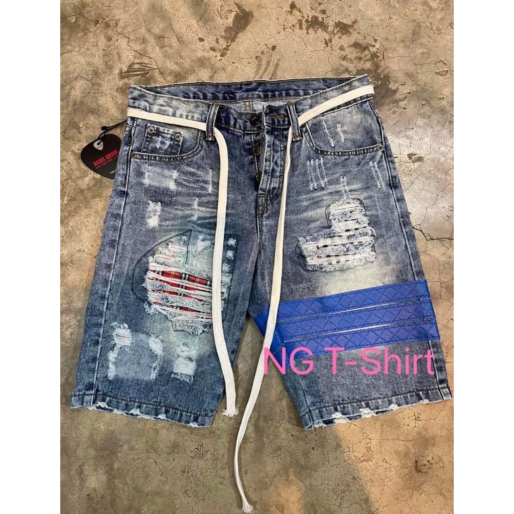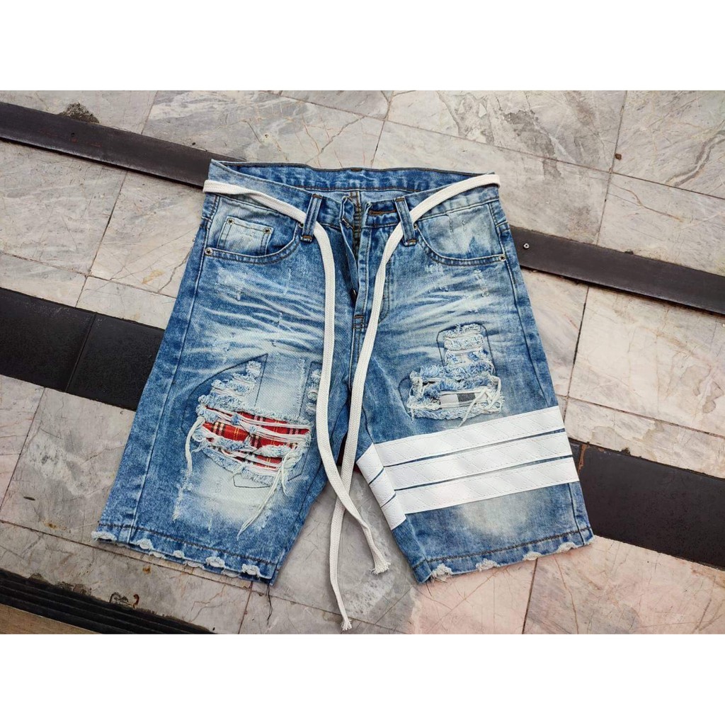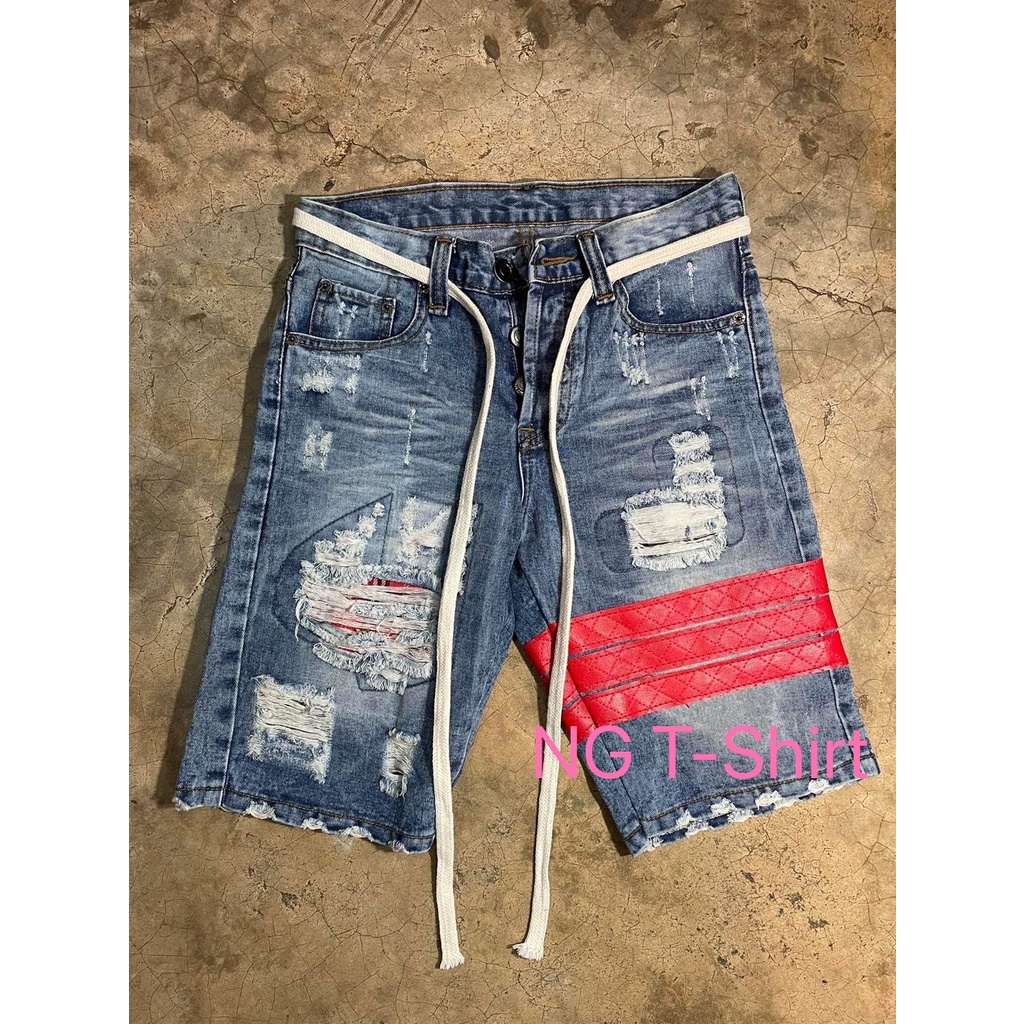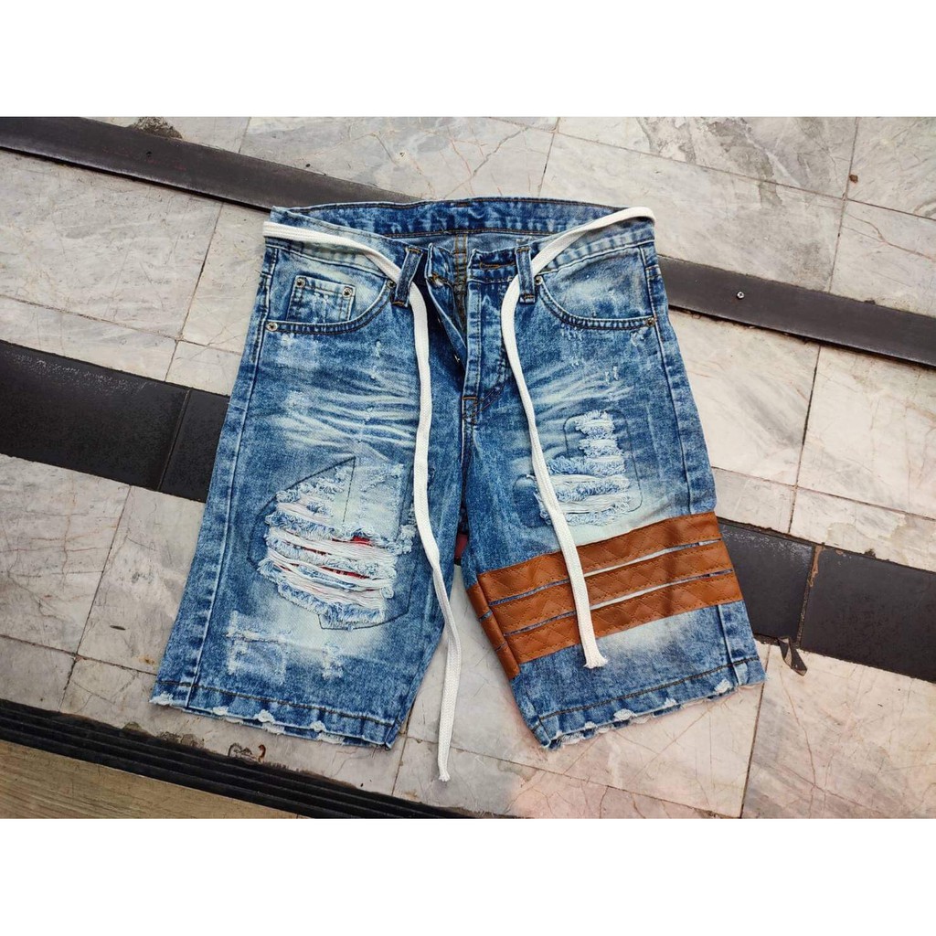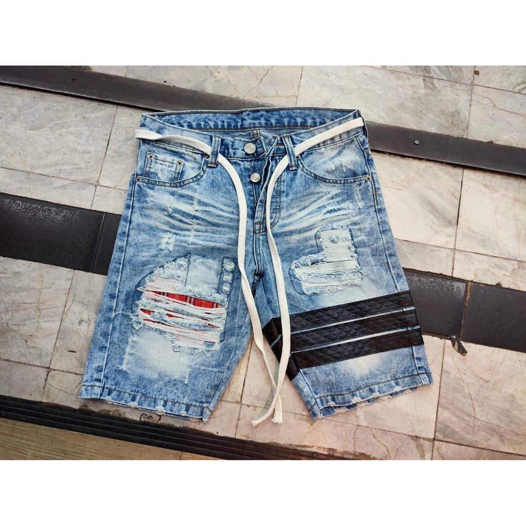 🔥 ขาสั้นรุ่นใหม่ 🔥 กางเกงยีนส์ขาสั้นแต่งแถบหนัง ( สินค้าถ่ายจากสินค้าจริง )