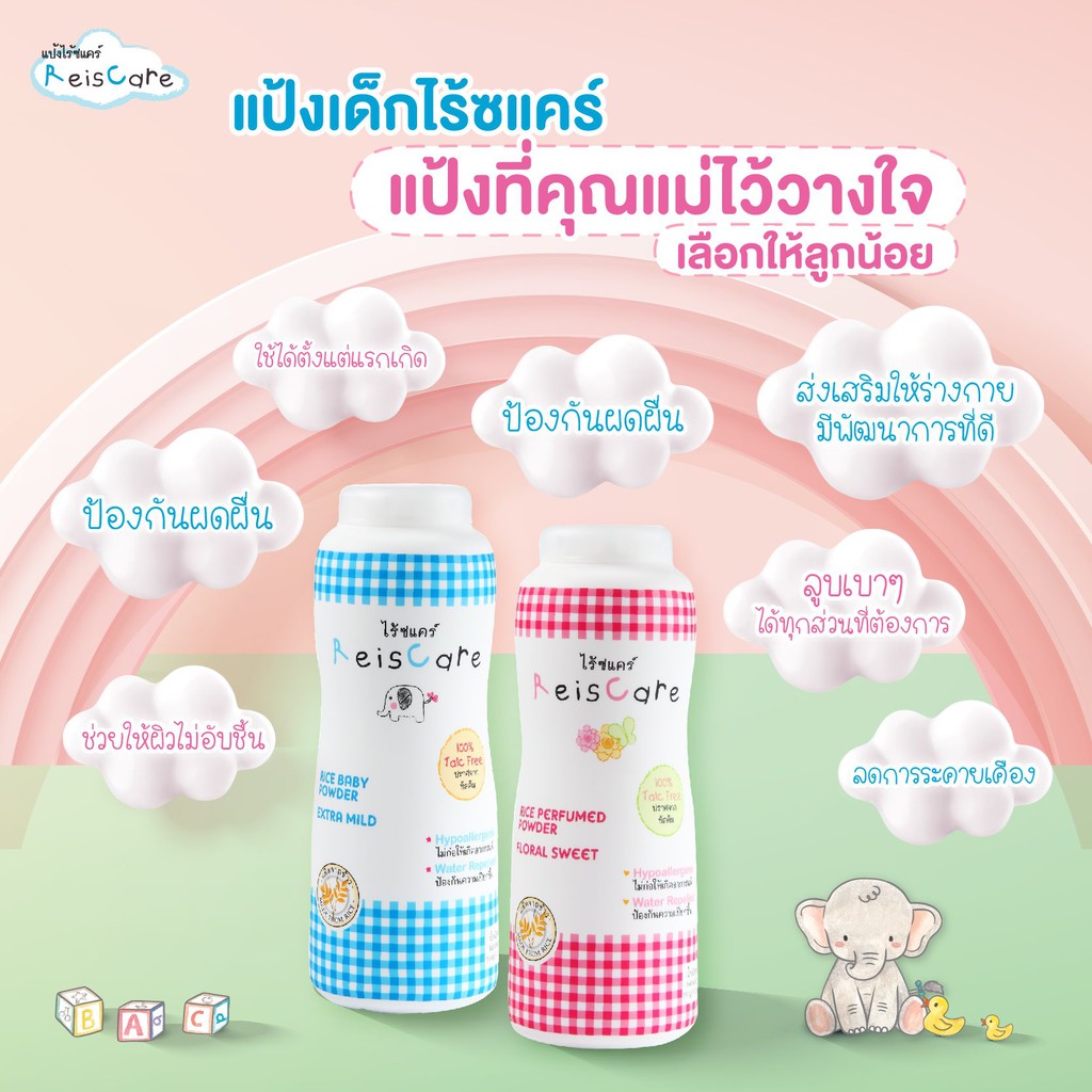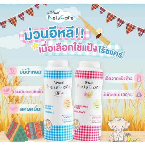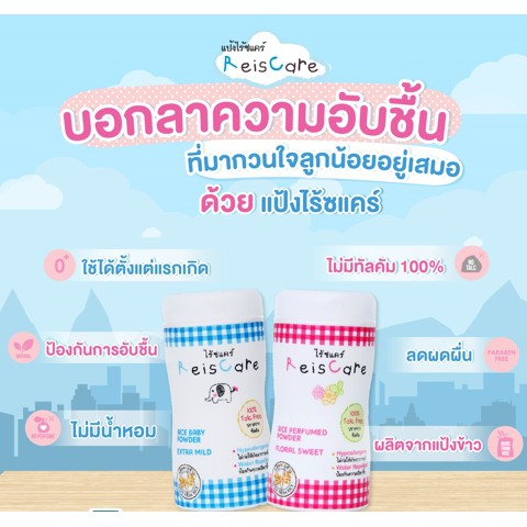 หยิบใส่ตะกร้าแป้งทาตัวไรซ์แคร์ (ReisCare) มี2สี สีฟ้า และ สีชมพู 40g/130g แบบกระปุก 130g