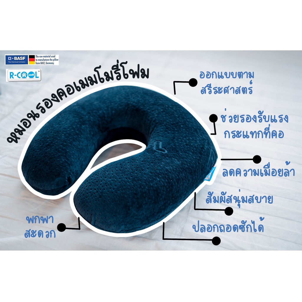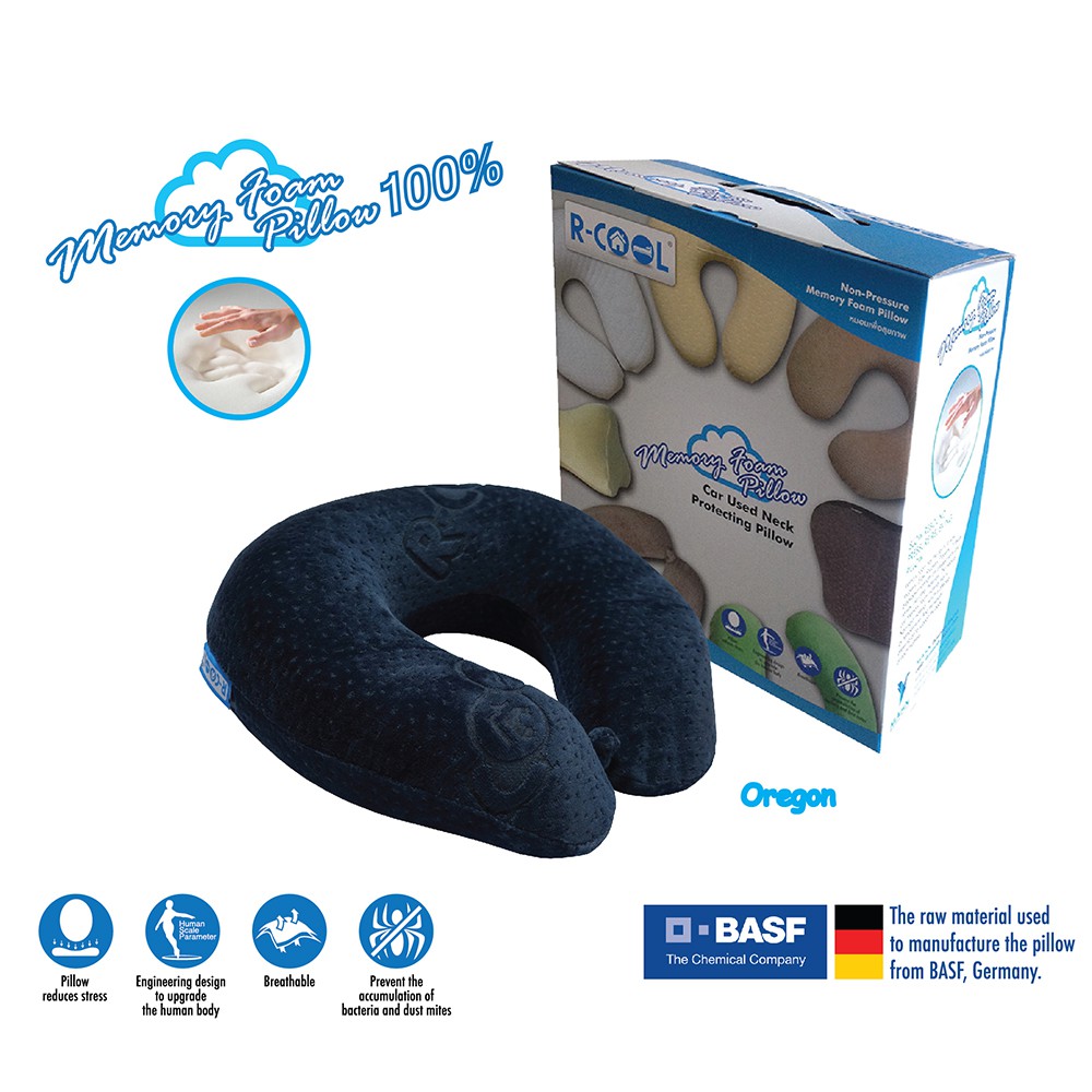 R-COOL หมอนรองคอเพื่อสุขภาพ รุ่น Oregon เมมโมรี่โฟมแท้ 100% ได้รับมาตรฐานรับรองจาก BASF วัตถุดิบนำเข้าจากเยอรมนีซึ่งเป็นมาตรฐานสากลที่ได้การยอมรับจา