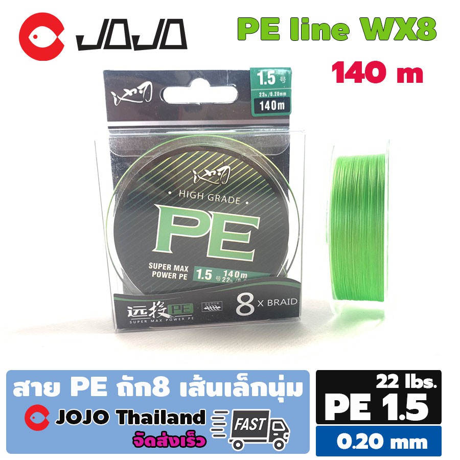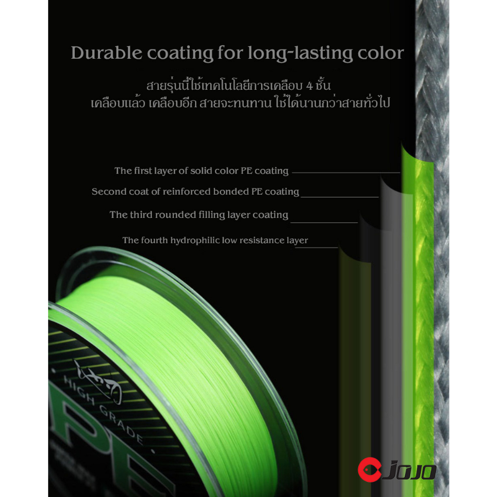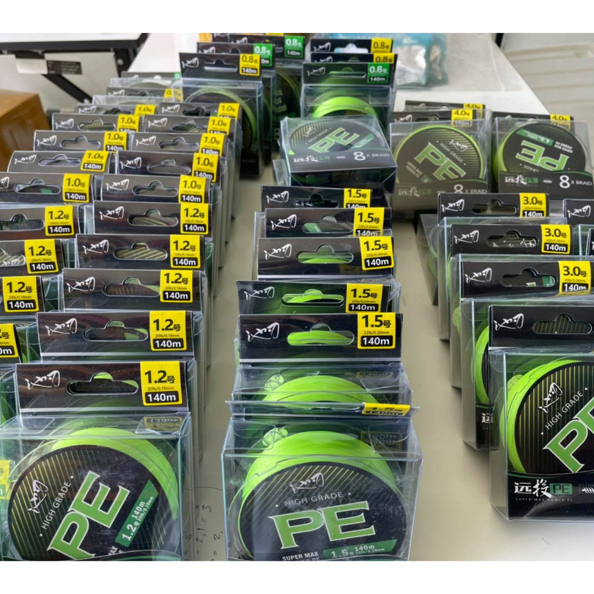 สาย พีอี ถัก 8 เส้นเล็ก กว่าสายทั่วๆไปในระดับราคาเดียวกัน ตีไกล เคลือบ 4 ชั้น สีเขียวสวย ทนแรงดึงสูง นุ่ม ลื่น เรียงตัวสวย