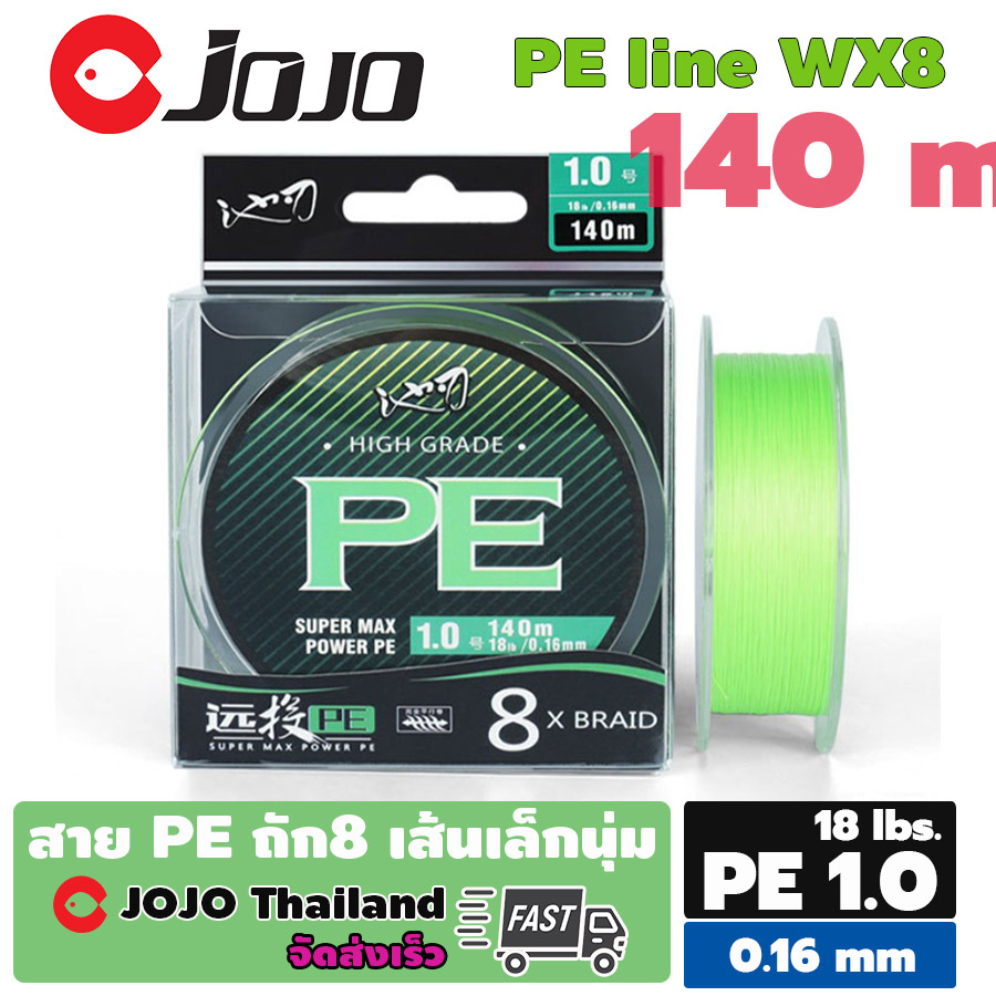 สาย PE ถัก 8 WX8 เคลือบ4 ชั้น เส้นเล็กนุ่มลื่น ม้วน 140 เมตร