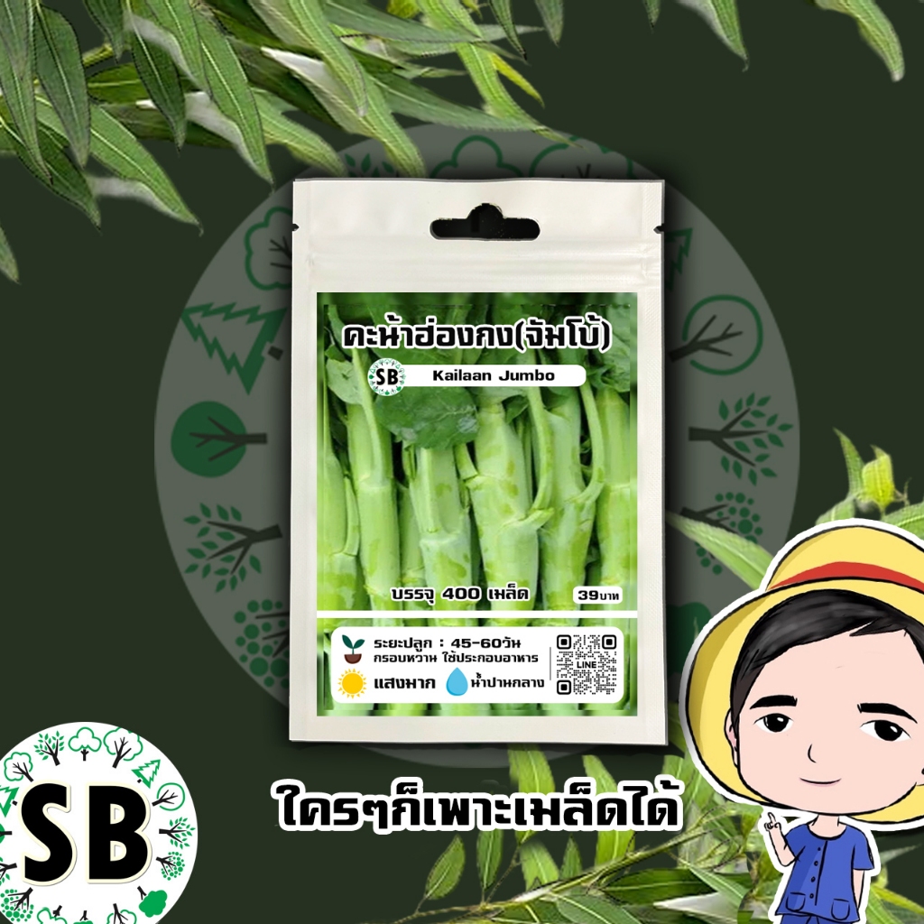 คะน้าฮ่องกง(จัมโบ้) บรรจุ 400 เมล็ด/ซอง 🔥โปรโมชั่น [ซื้อ 2แถม 1ซอง]