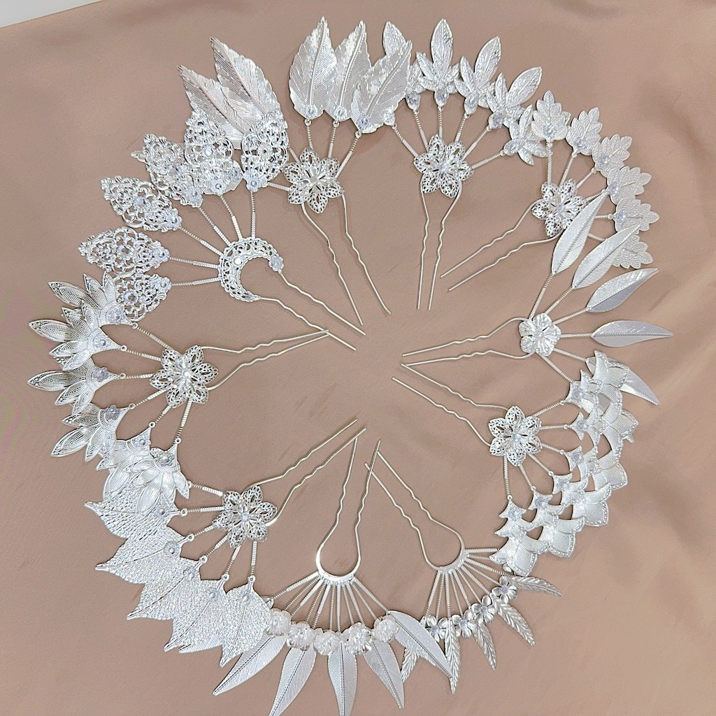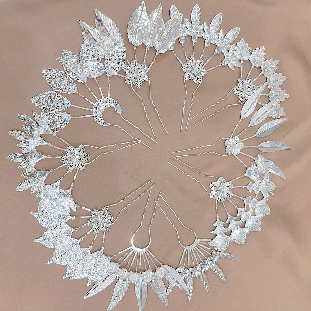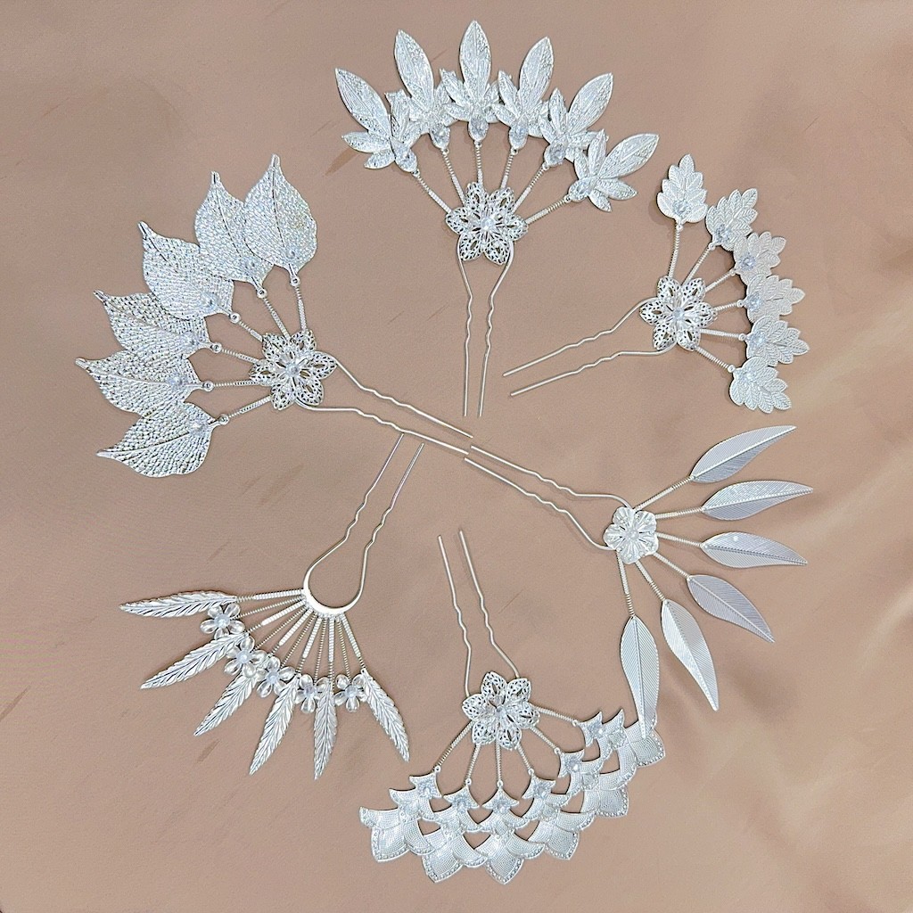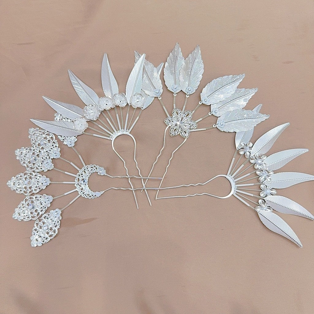 เข็มกิ๊บซิลเวอร์และคลิปผมสไตล์ไทยตกแต่งด้วยใบไม้หลากสี,สำหรับชนเผ่าโลหะ, อุปกรณ์ประดับเทศกาลลอยกระทง, กิ๊บผมสไตล์ไทย