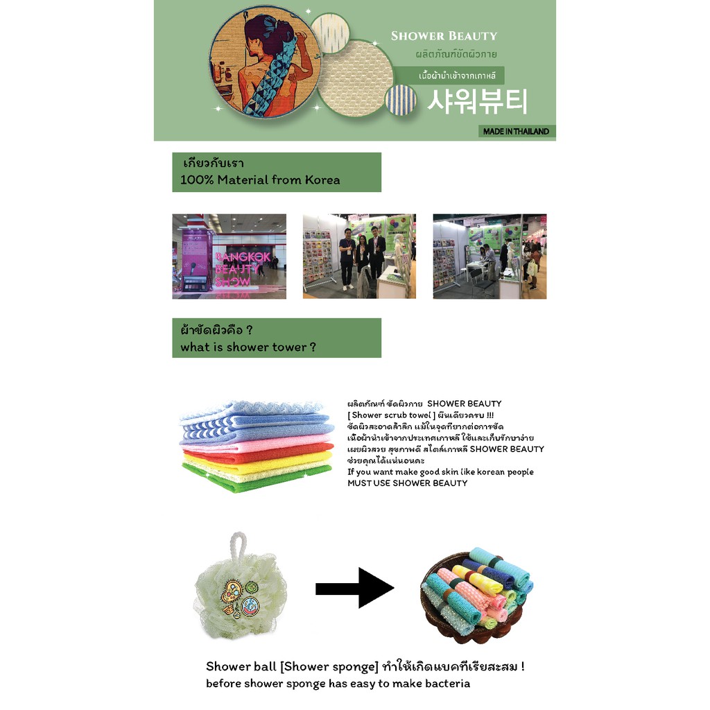 หยิบใส่ตะกร้าSHOWER BEAUTY[Shower scrub towel]ผ้าขัดผิวกายผืนเดียวครบขัดผิวสะอาดล้ำลึกแม้ในจุดที่ยากต่อการขัด