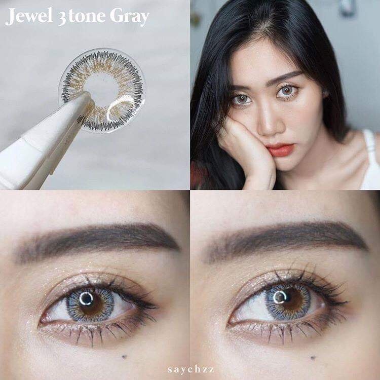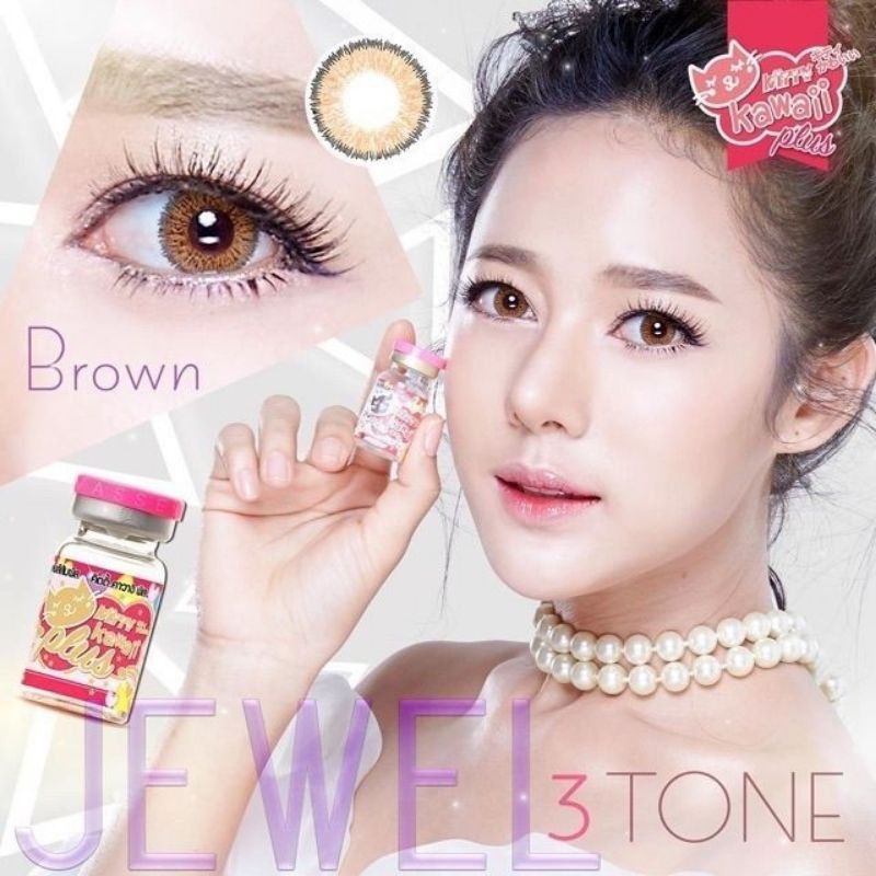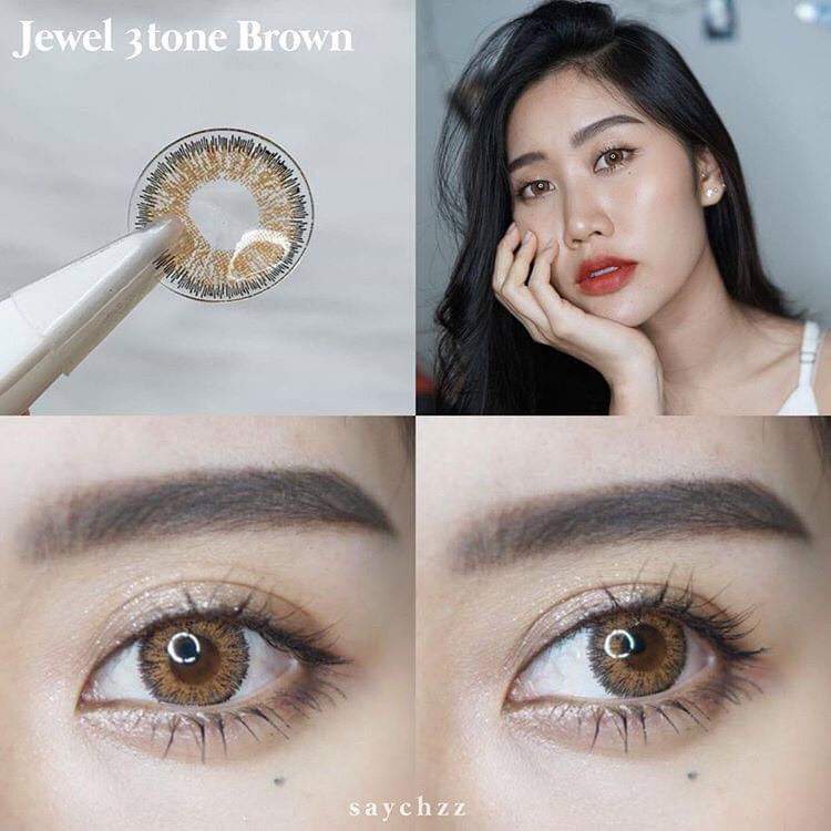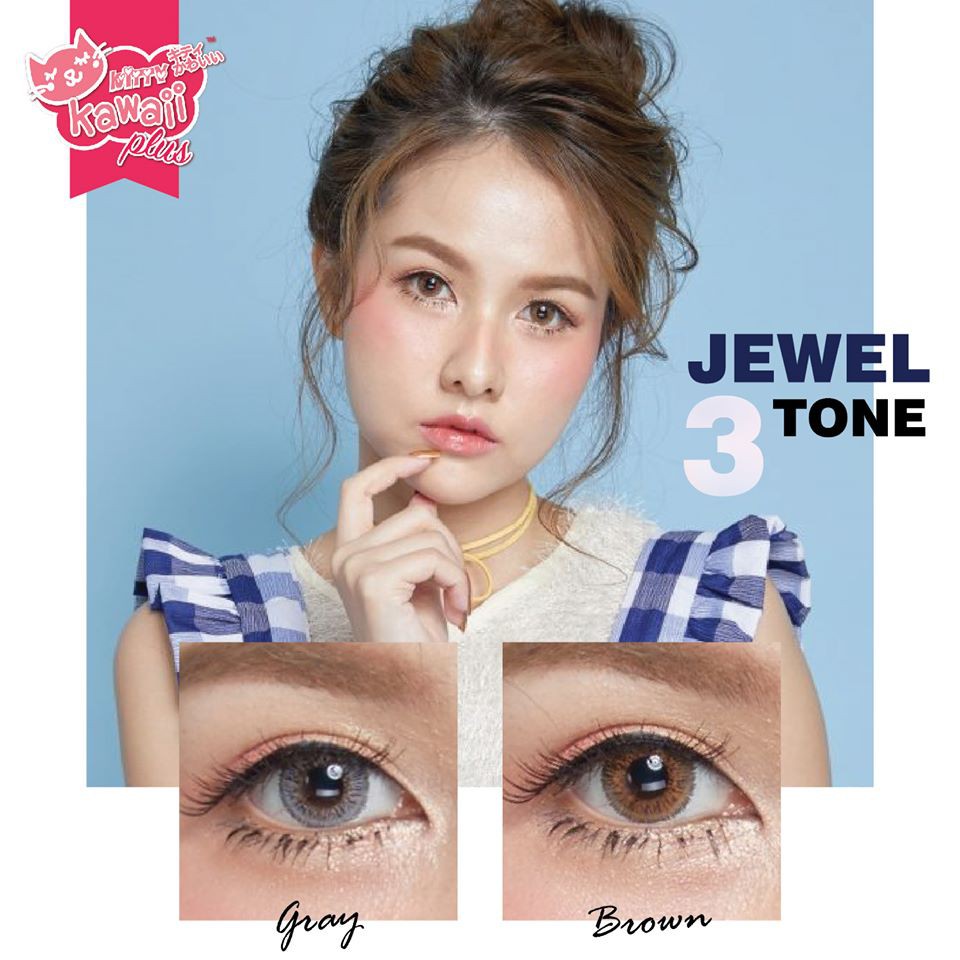 หยิบใส่ตะกร้า💖 Kitty kawaii ๑ Jewel 3 tone สายตา -00 ถึง -1000 brown gray Contactlens บิ๊กอาย คอนแทคเลนส์ ราคาถูก แถมตลับฟรี.