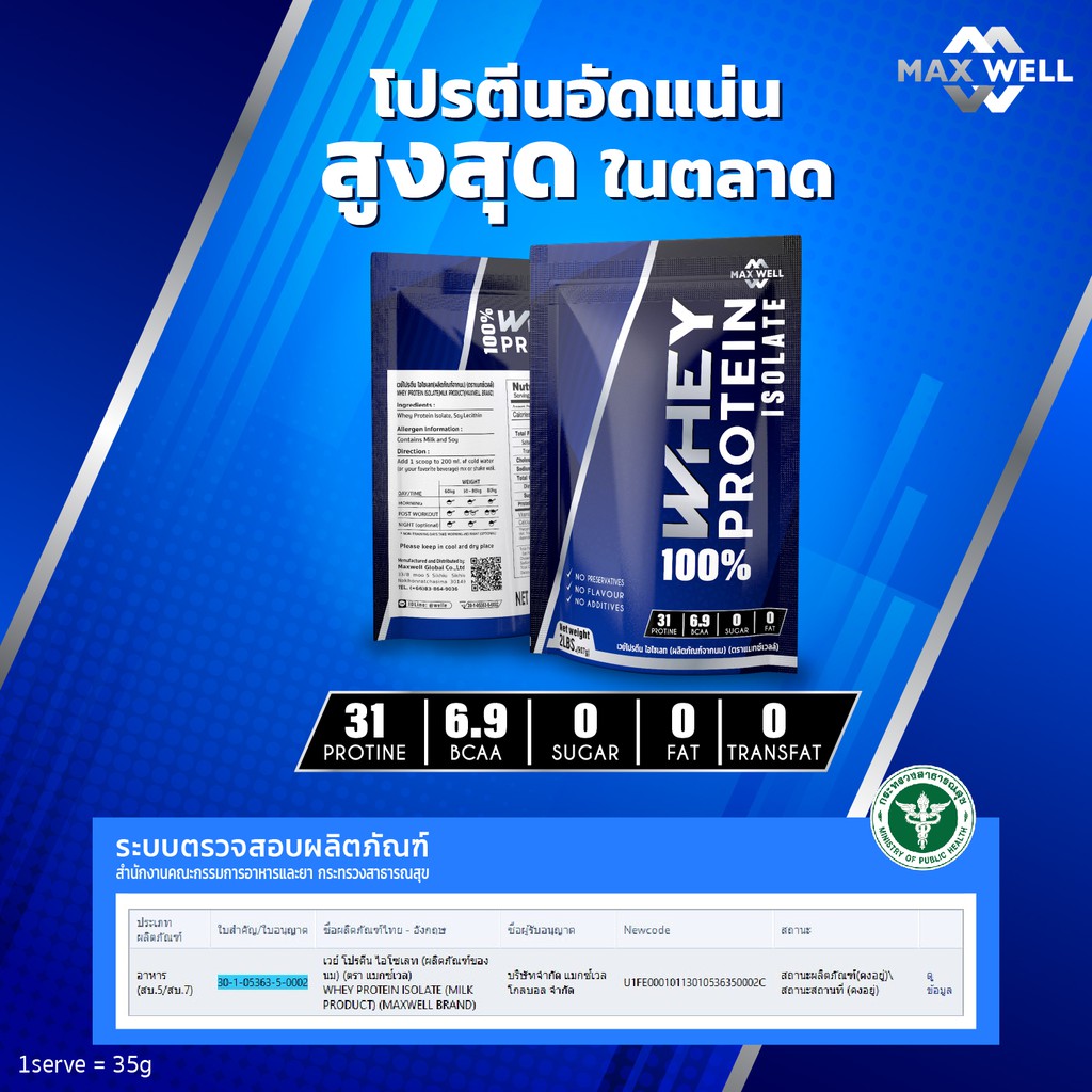 Maxwell Whey protein Isolate สกัดจากนมแท้ 100% ปลอดภัยได้มาตรฐาน นำเข้าจาก USA
