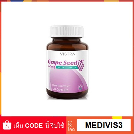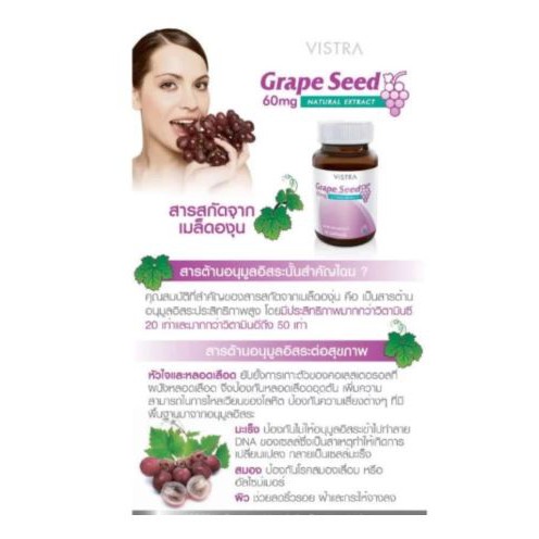 Vistra Grape Seed Extract 60 mg วิสทร้า สารสกัดจาก เมล็ดองุ่น ขนาด 7 เม็ด 20034 ( รอสินค้าเข้า ) / 20 เม็ด 03682 ( รอสินค้าเข้า ) / 30 เม็ด 11922