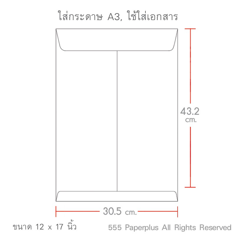 ขนาด : 30.5 x 43.2 ซม. หรือ 12 x 17 นิ้ว ใส่เอกสารขนาด A3