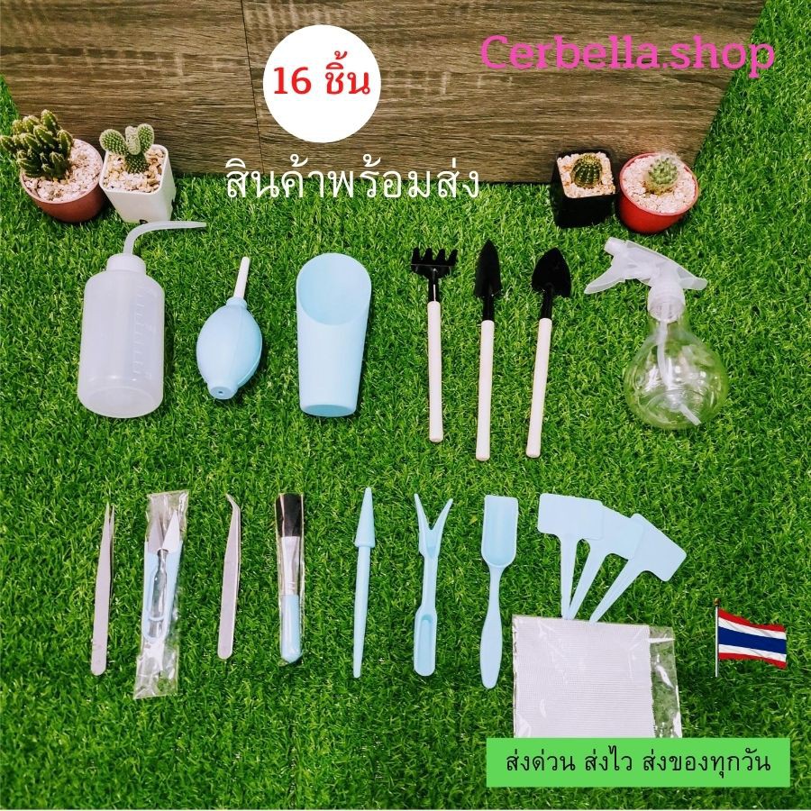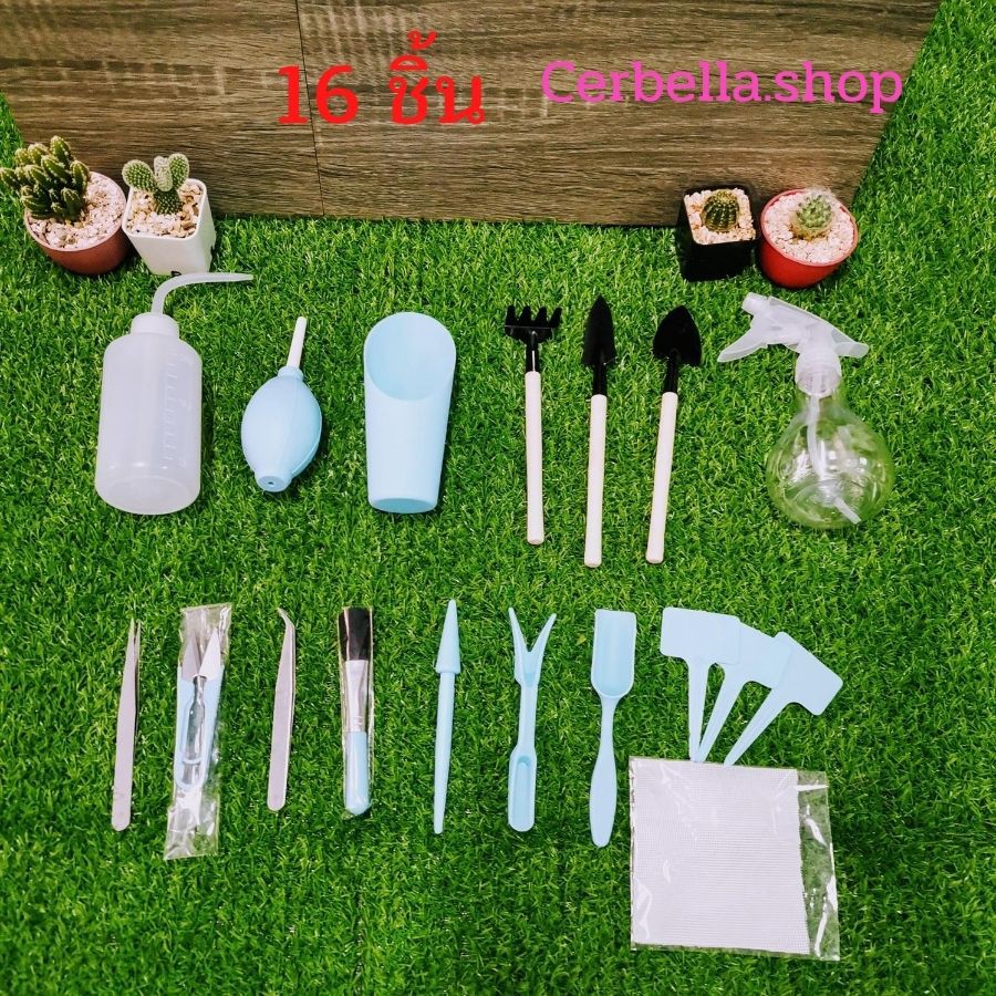 อุปกรณ์ปลูกแคคตัส กระบองเพชร 16 ชิ้น ครบชุด ใช้สำหรับปลูก แคคตัส ต้นไม้ขนาดเล็ก มีกระบอกรดน้ำ ถือว่า เป็นเซตที่ครบพร้อมใช้งาน สินค้ามา