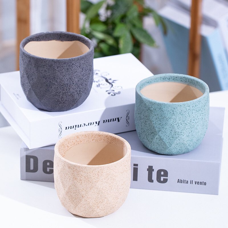 🔥🔥🔥กระถางเซรามิก กระถางแคคตัส ทรงกลมเรขาคณิต V.2 มาใหม่🔥🔥🔥