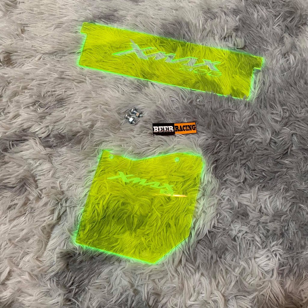 สุดคุ้มกันดีด+แผ่นกั้นใต้เบาะXmax (งานเลเซอร์สกีนโลโก้สวยงาม) งานอคิลิคหนาอย่างดี ไม่แตกหักง่าย For YAMAHA Xmax (แถมฟรีสติ๊กเกอร์ร้าน)