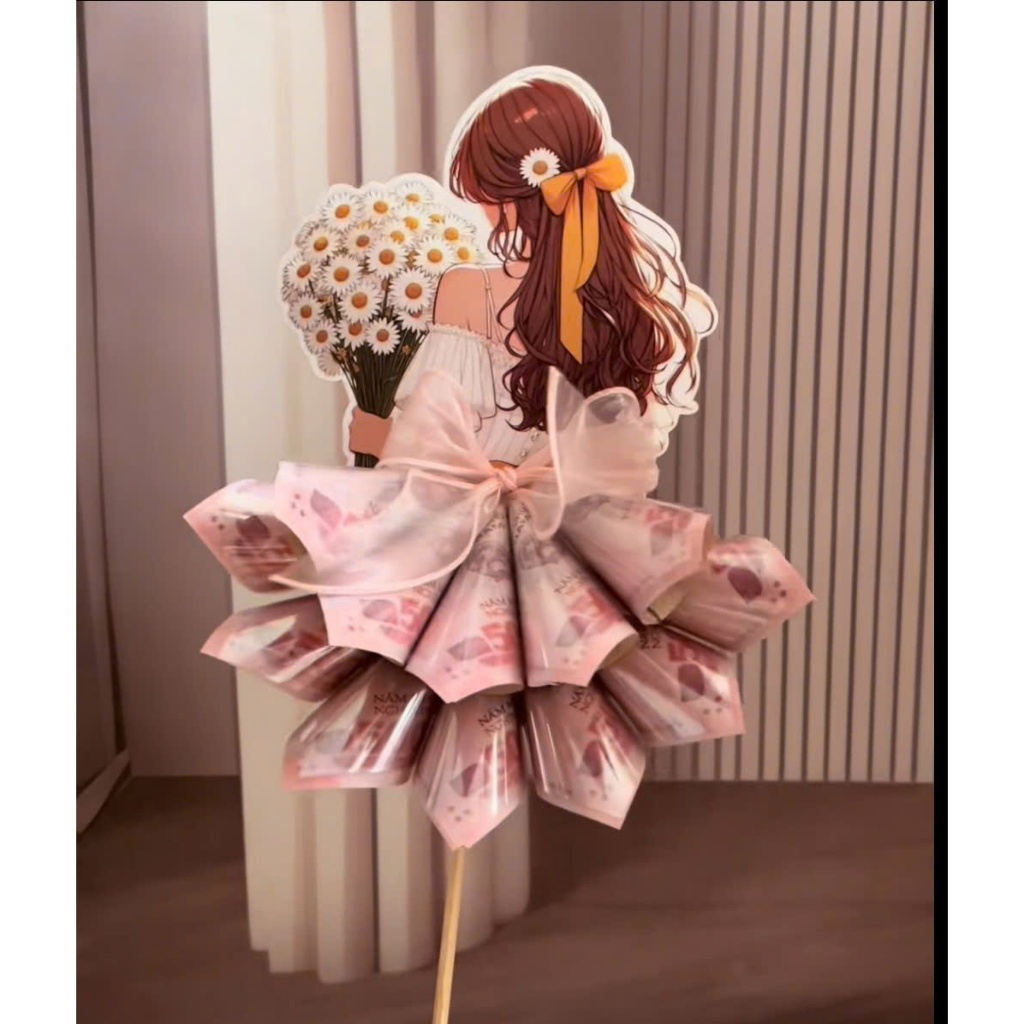 ตัวอ่อนของหญิงสาวทำด้วยกระโปรงขาเงินคุณเพียงแค่ต้องใช้เงินและใส่ไว้ในช่อดอกไม้กล่องของขวัญวันเกิดให้แฟนและคนที่คุณรัก