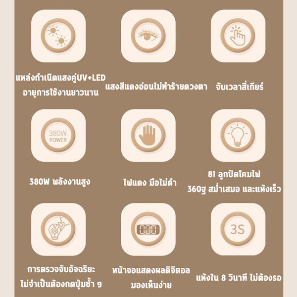 – ตั้งเวลาอบปิดอัตโนมัติ 10 30 60 และ 99 วินาที