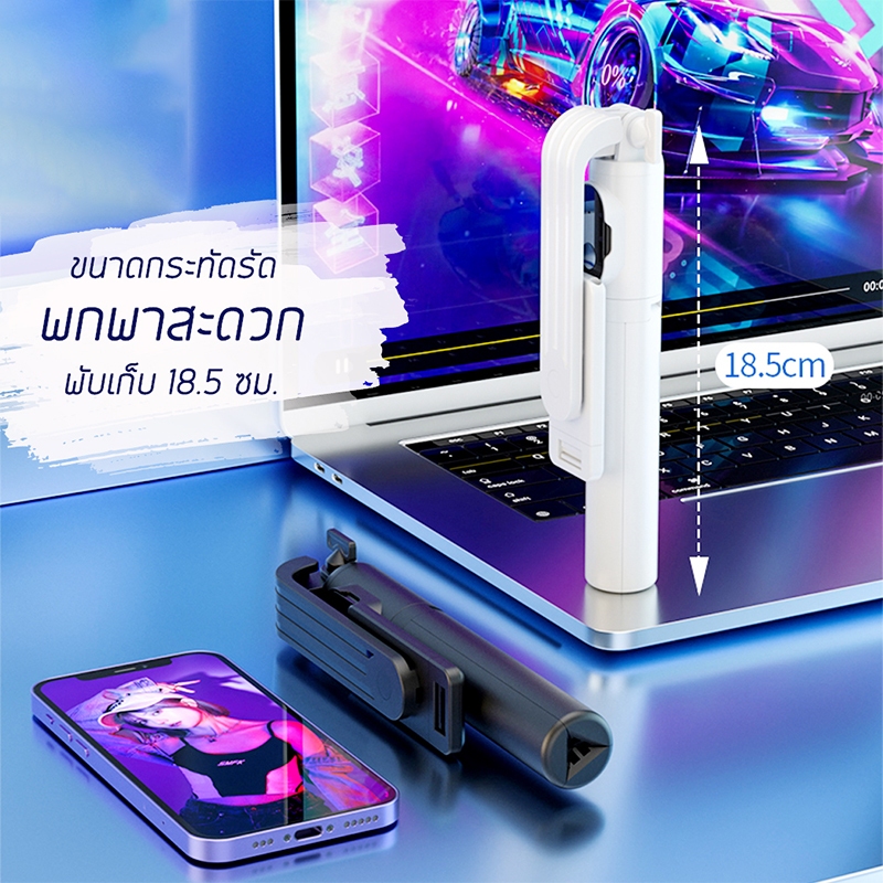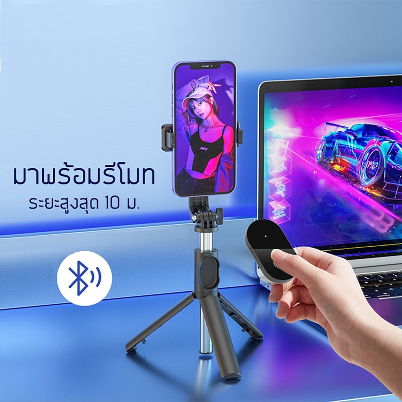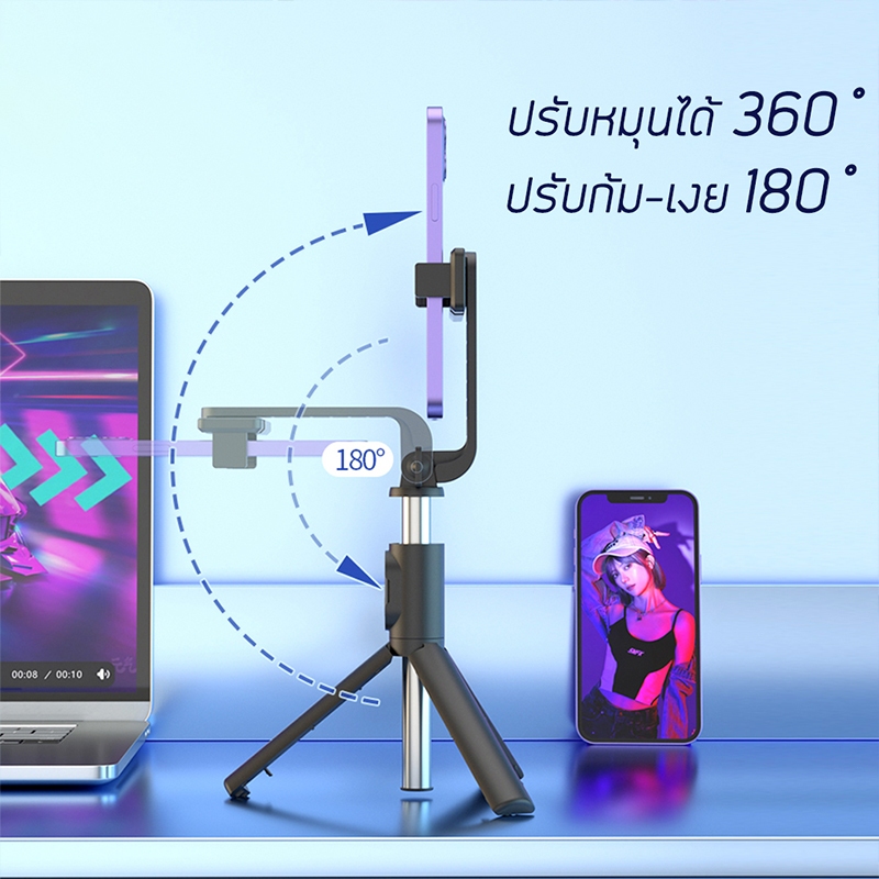 ไม้เซลฟี่มี ขาตั้งกล้องสามขา P20S มีรีโมทบลูทูธ หมุนได้แนวตั้งและแนวนอน Handheld Selfie Stick Bluetooth การหมุน 360 °