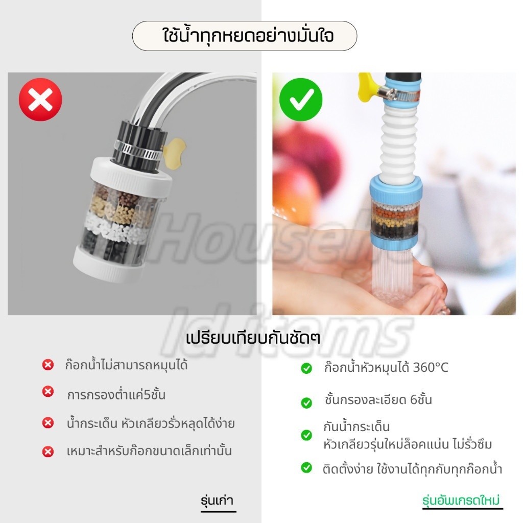 กรองน้ำสะอาด (รุ่นอัพเกรดใหม่ปรับค่าPHในน้ำ)หมุนได้ 360°C ชั้นกรองละเอียด6ชั้นกรอง