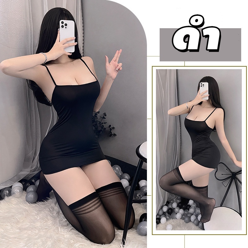 Cojr💥ชุดเดรสเซ็กซี่ ชุดสุดฮอต😘ชุดนอนเปิดหลัง🙈40-60 กก. เนื้อผ้าใส่สบาย💨ชุดนอนสายเดี่ยว🚚ส่งไวจากไทย