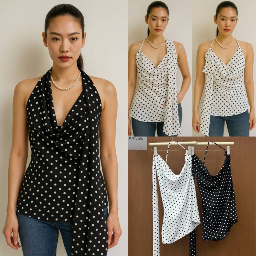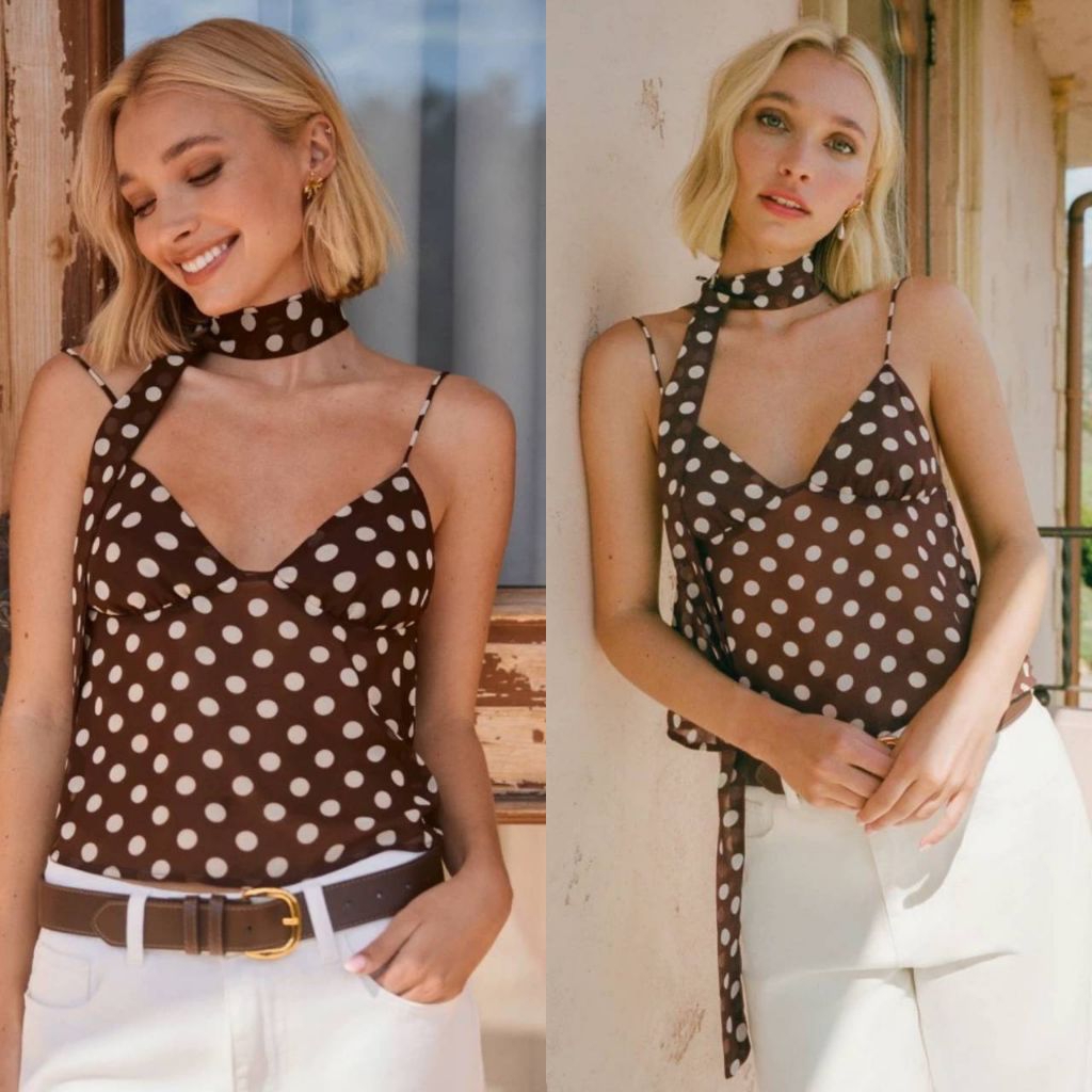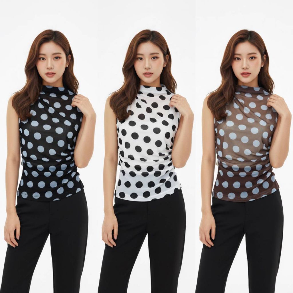 เสื้อตาข่ายลายจุด ทรงเข้ารูป ผูกข้างเก๋ ๆ ใส่แมทช์ได้ทุกลุค สายฝอ สายหวาน คือรอด!”