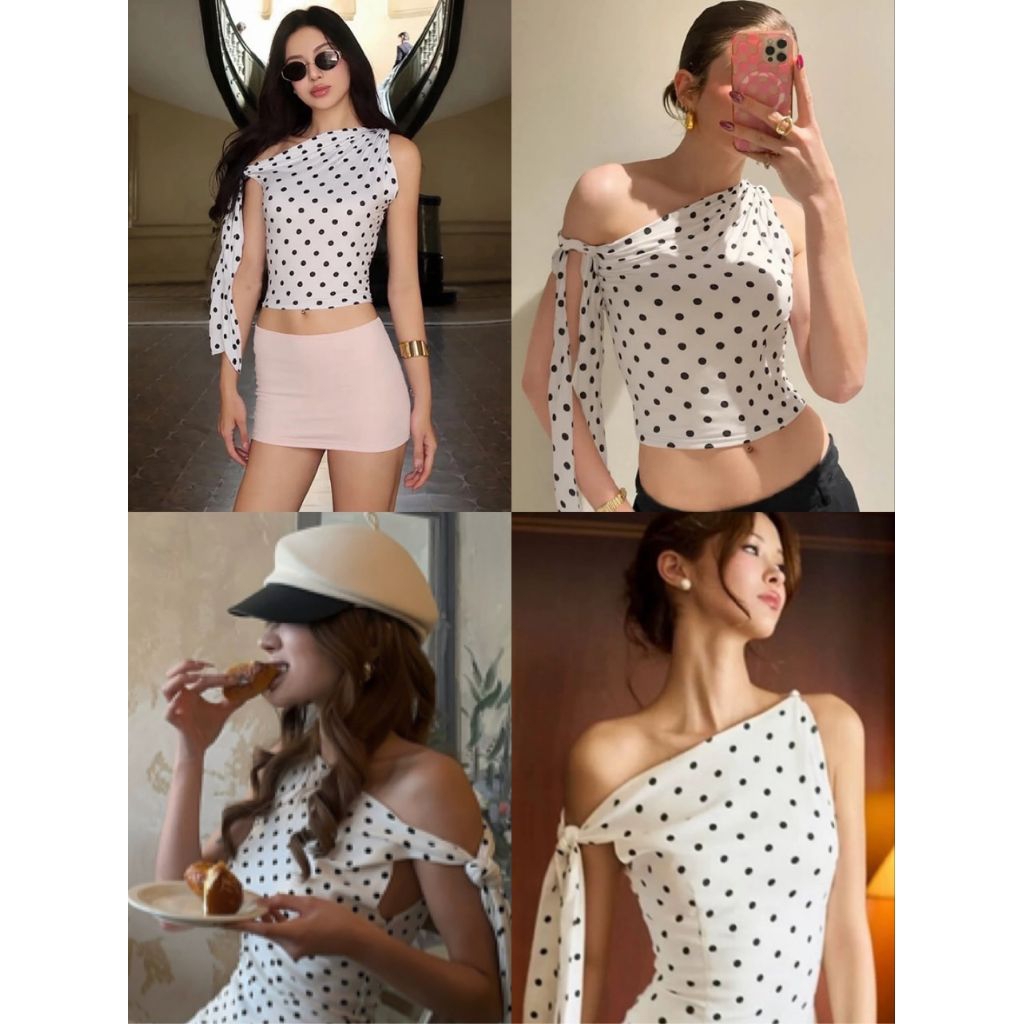 เสื้อเปิดไหล่ข้างเดียวลายจุด