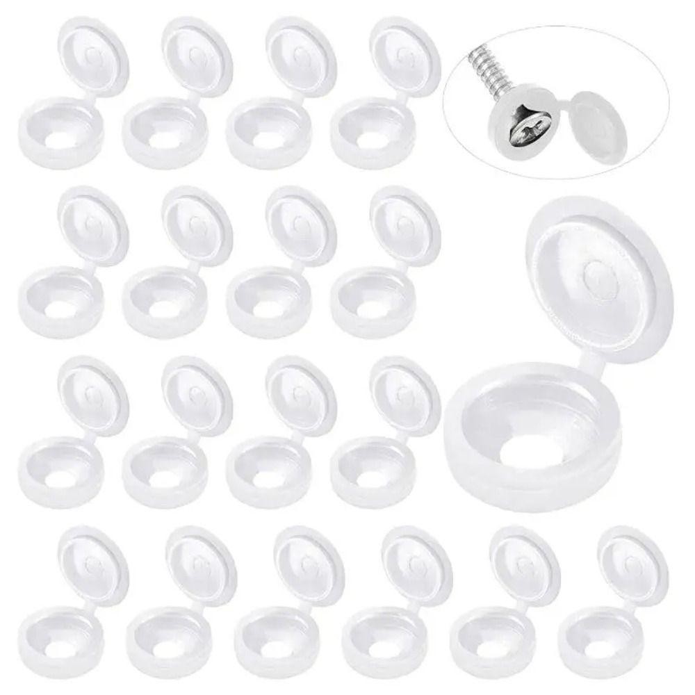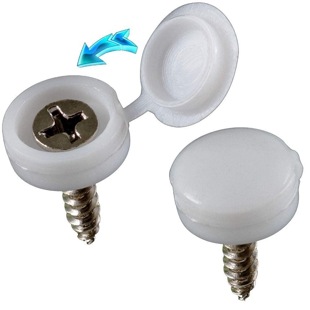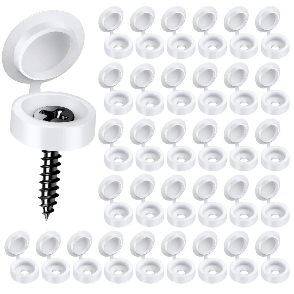 ANTOT 100 ชิ้นสกรูตกแต่งฝาครอบ, Self-Tipping Bolts ฮาร์ดแวร์พลาสติกสกรูฝาครอบ, Universal สีขาวพับ Snap ป้องกันหมวกปุ่ม