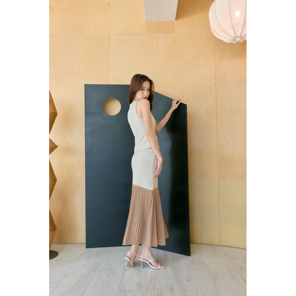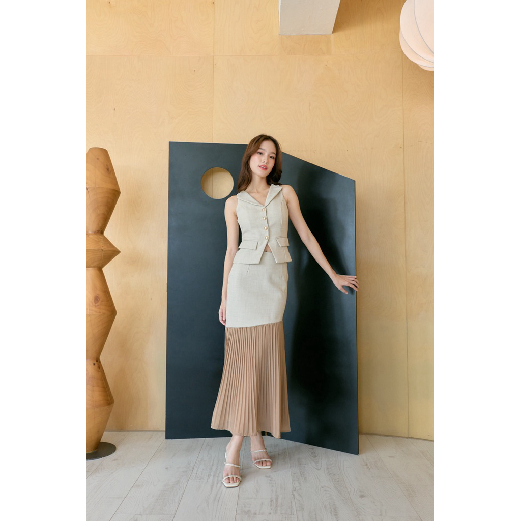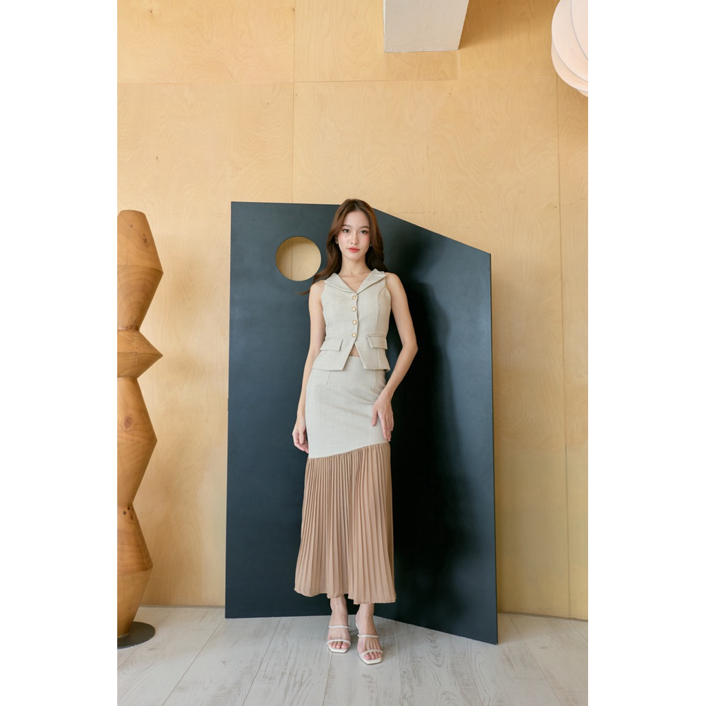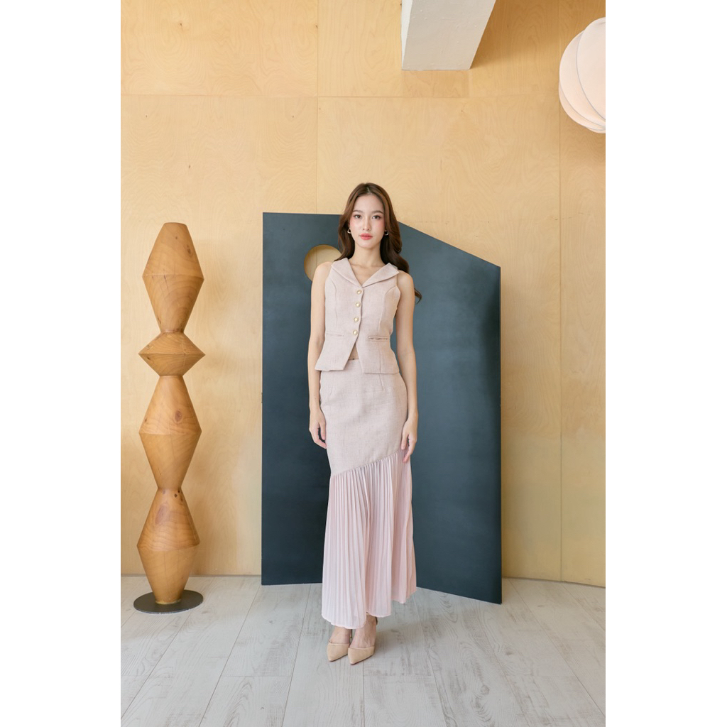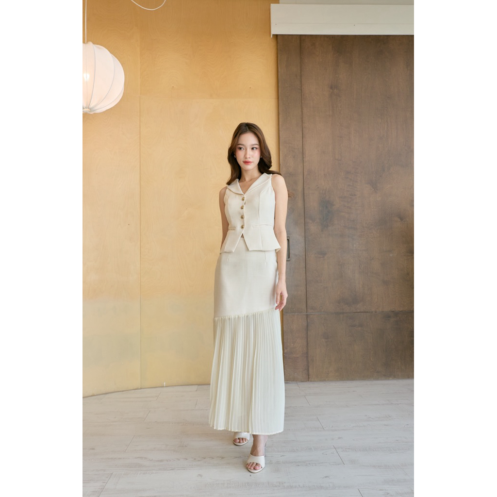 Selena Set เสื้อคอปก+กระโปรงพลีทยาว
