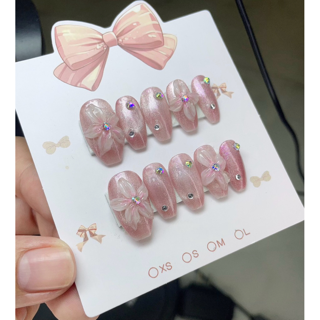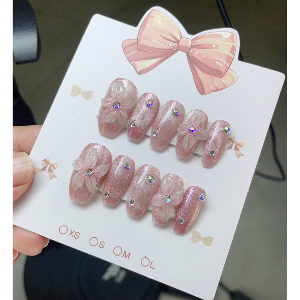 หยิบใส่ตะกร้าเล็บปลอมสีลูกแก้วชมพู ปั้นดอก