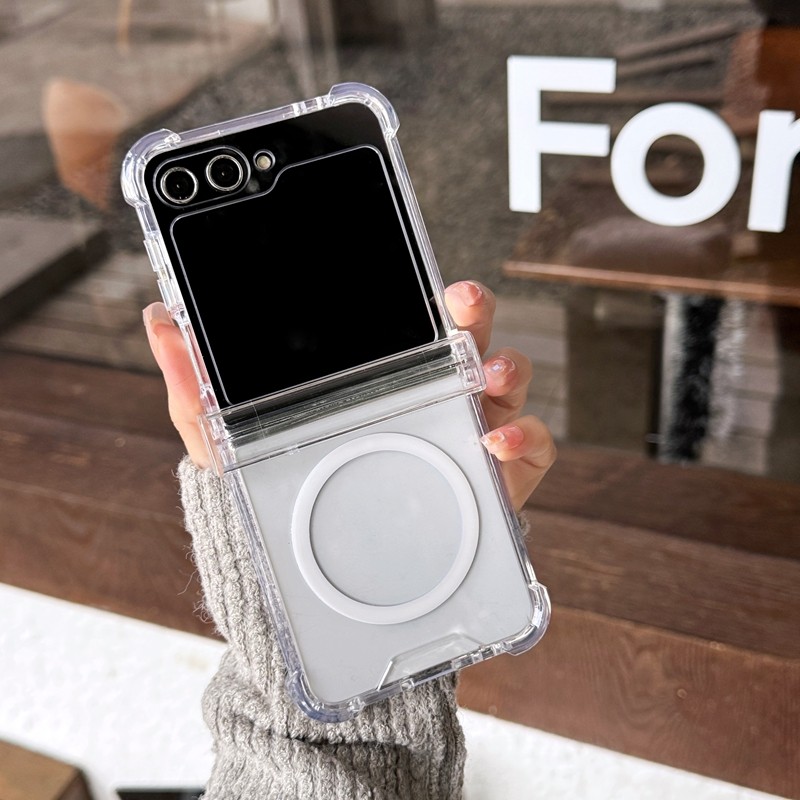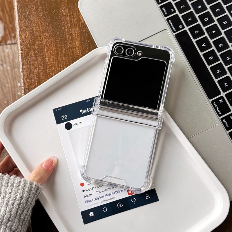 กันกระแทกปลอกใสสําหรับ Samsung Galaxy Z Flip 7FE 6 5 4 3 พับถุงลมนิรภัยอะคริลิคโปร่งใส Zflip3 Flip4 Flip5 Flip6 3in1 เคสโทรศัพท์