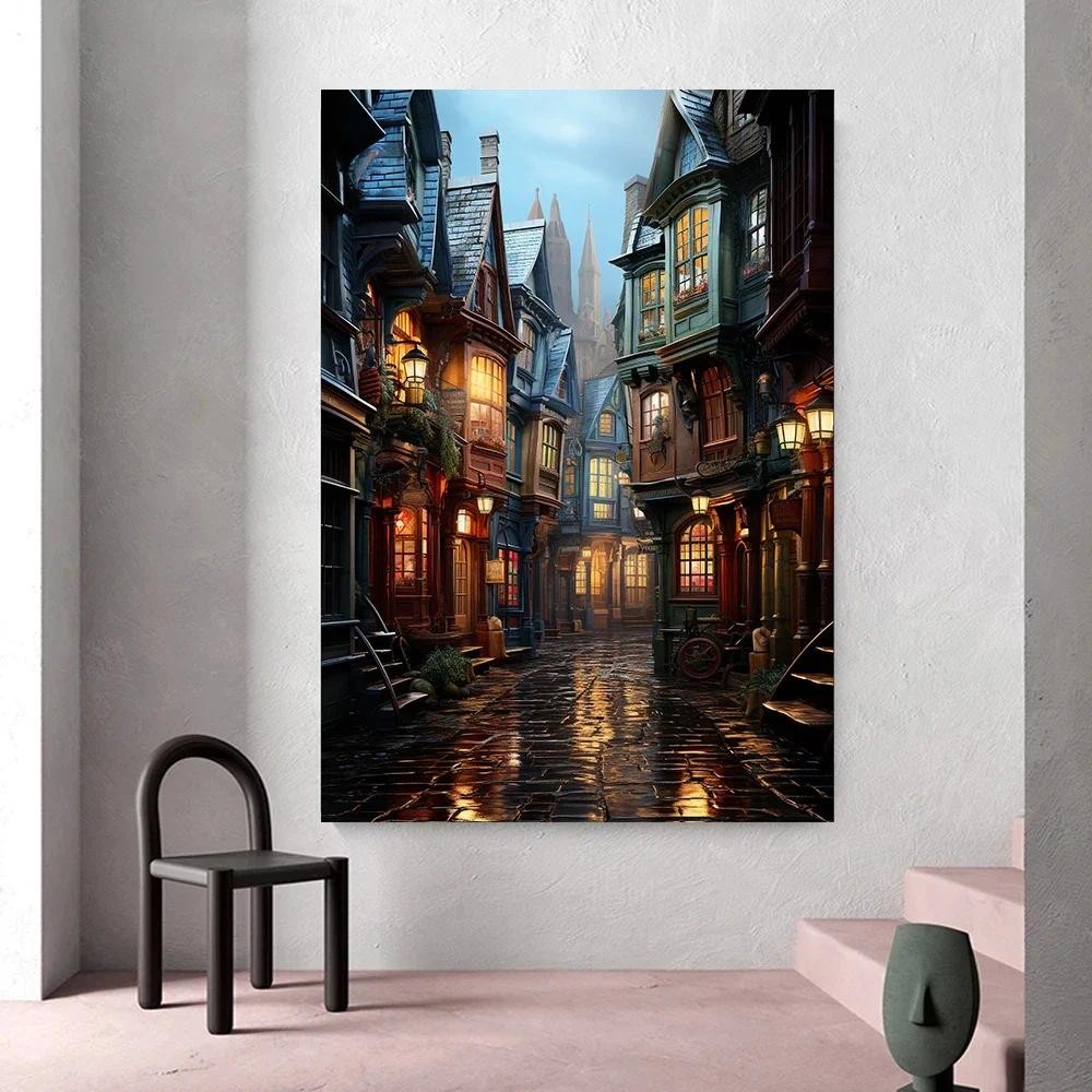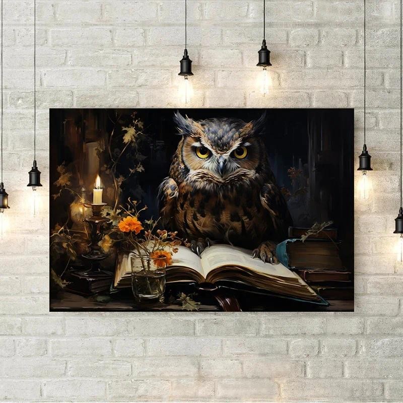 Dark Academia Magical Castle Train School Art โปสเตอร์ผ้าใบภาพวาดพิมพ์แฟนตาซี Magic Wizard หนังสือนกฮูกผนังตกแต่งของขวัญ