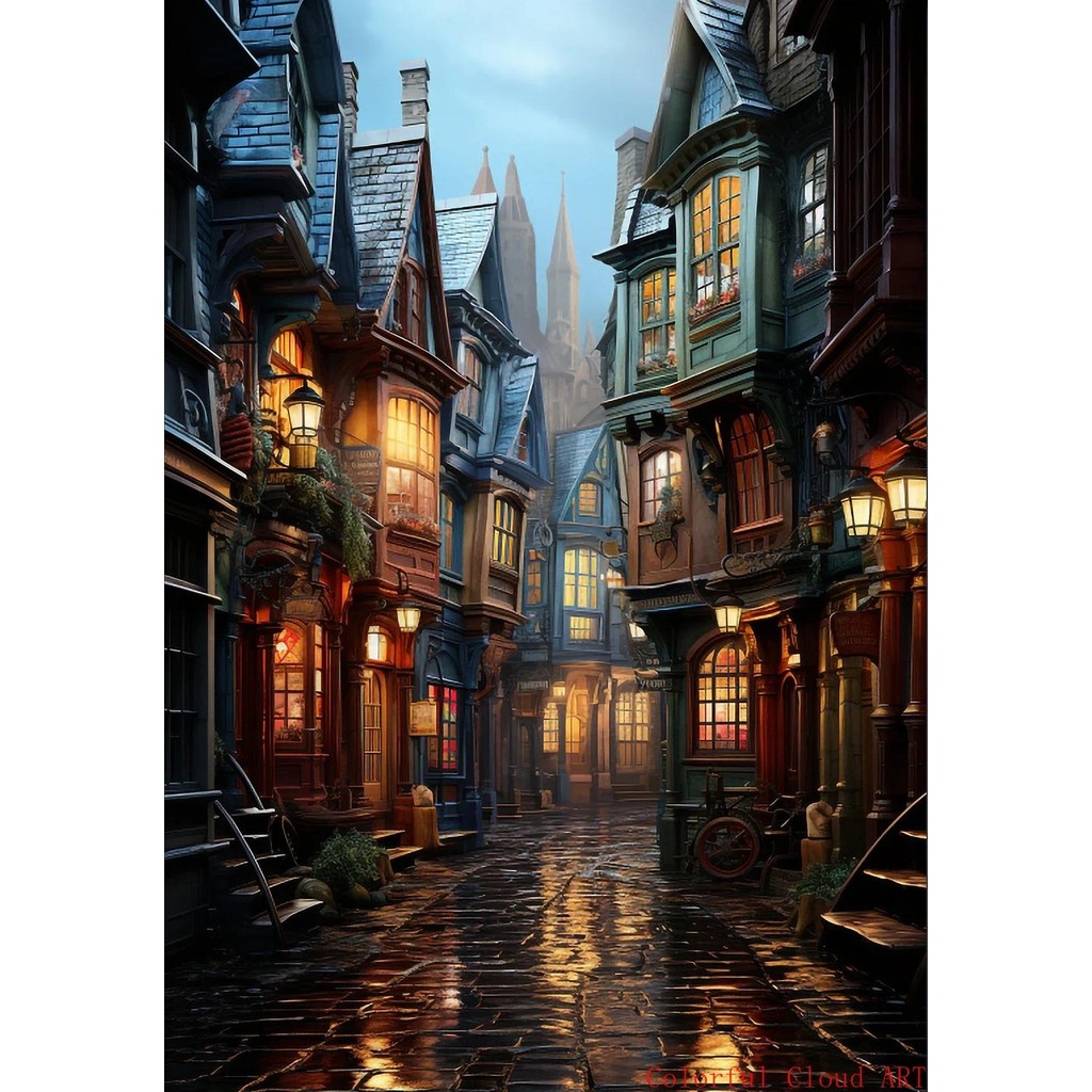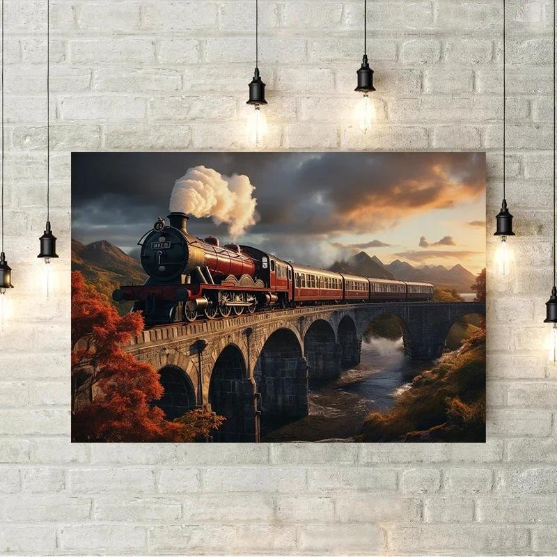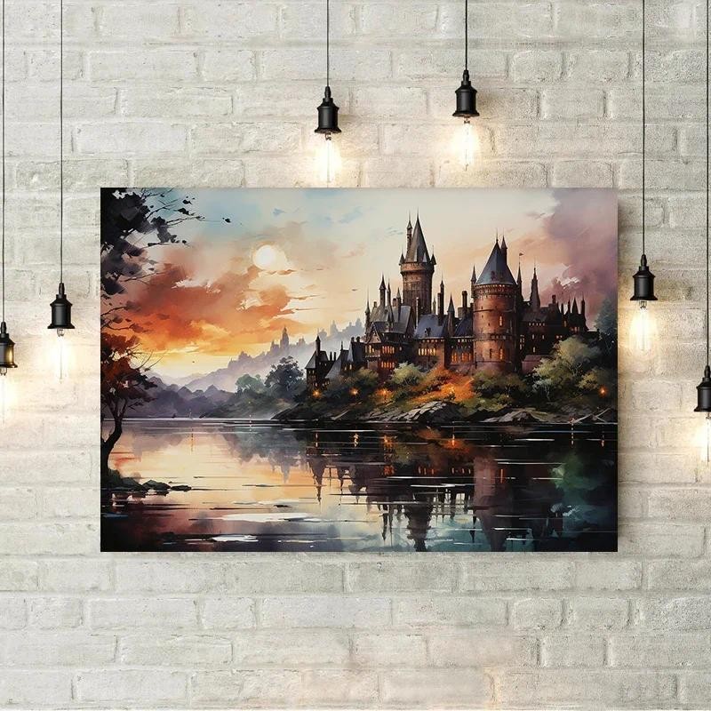 หยิบใส่ตะกร้าDark Academia Magical Castle Train School Art โปสเตอร์ผ้าใบภาพวาดพิมพ์แฟนตาซี Magic Wizard หนังสือนกฮูกผนังตกแต่งของขวัญ
