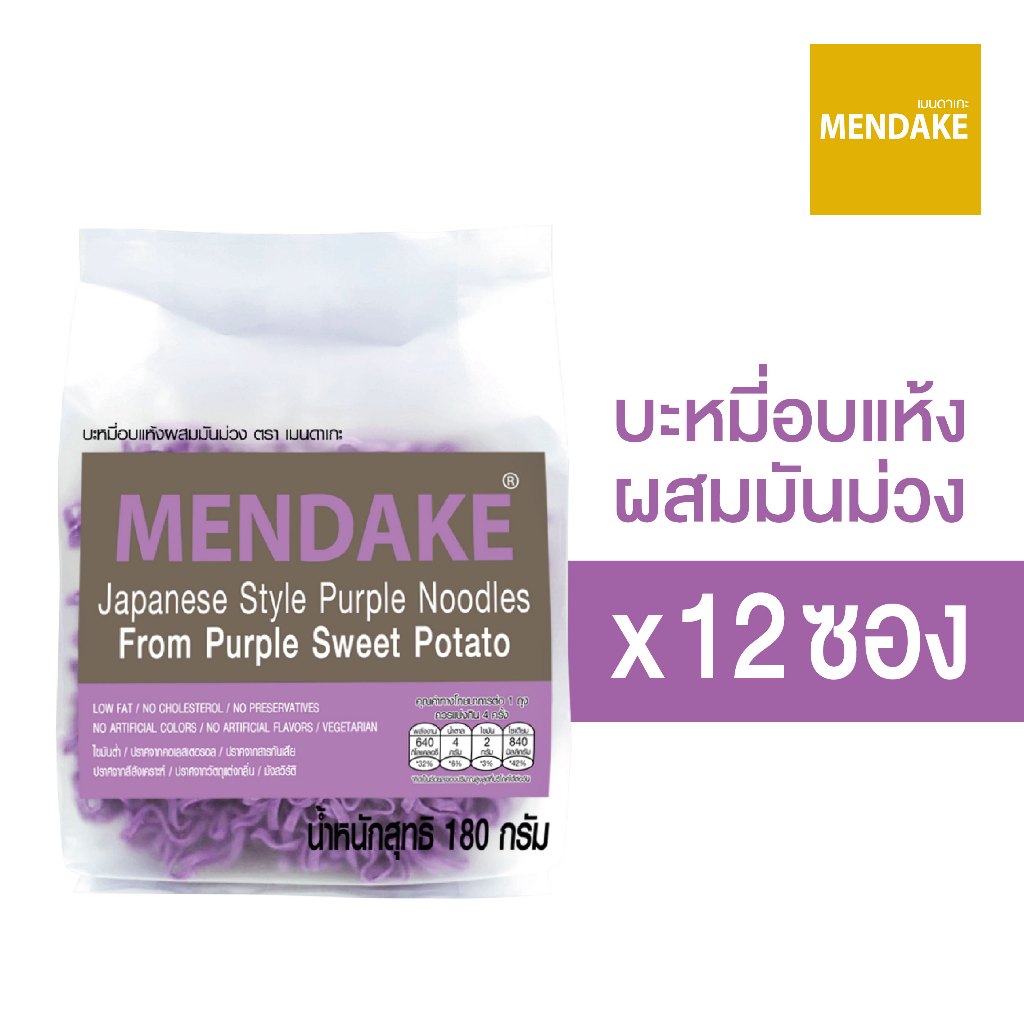 Mendake เมนดาเกะ บะหมี่อบแห้งผสมมันม่วง จำนวน 12 ซอง (ซองละ 180 กรัม: 4 ก้อน ซองสีม่วง)