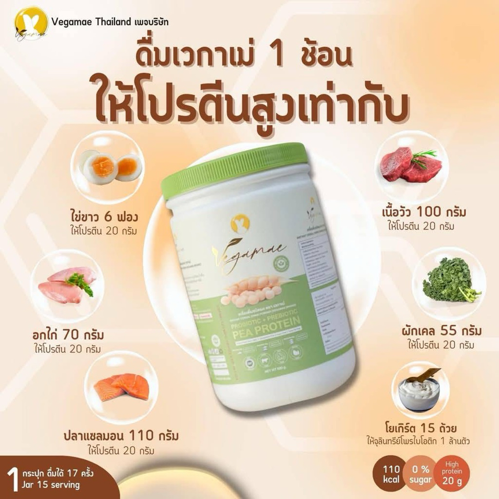 เวกาเม่โปรตีนทางเลือกใหม่ขณะอนุภาคเล็กมีคุณสมบัติพิเศษคือการออกแบบมาเพื่อให้ดื่มง่ายหอมละมุนผิวสวยใสเสริมสร้างระบบกล้ามเนื้อและดูแลระบบขับถ่ายสูตรซินไบโอติก