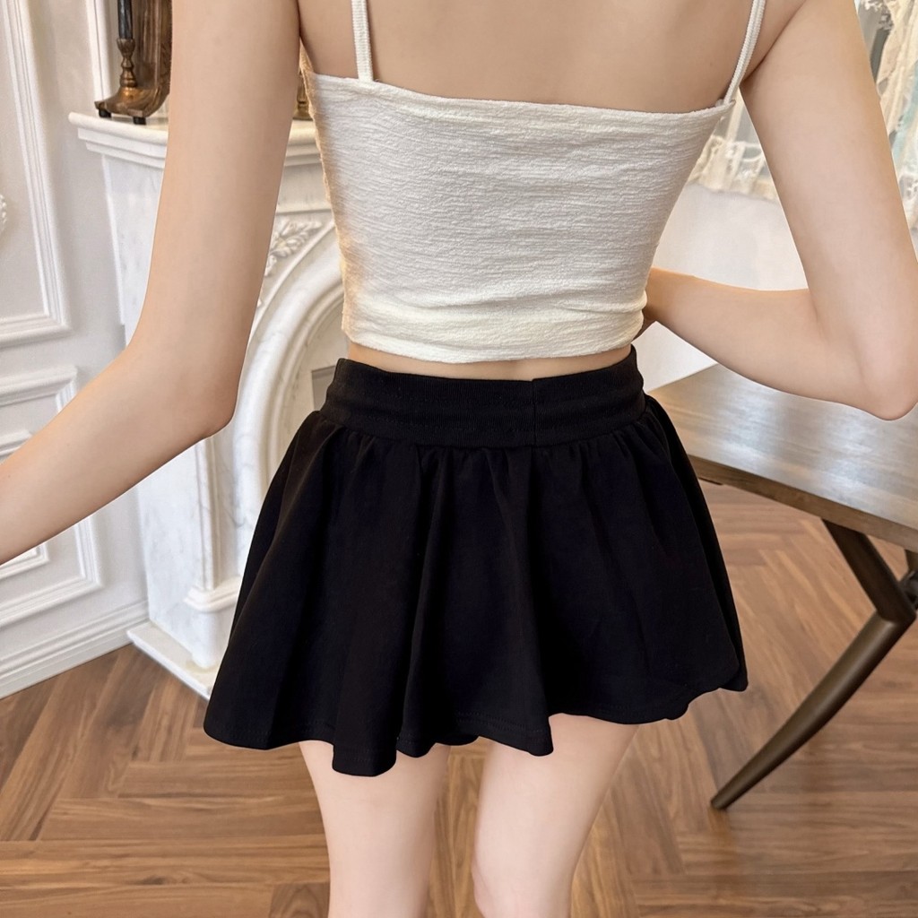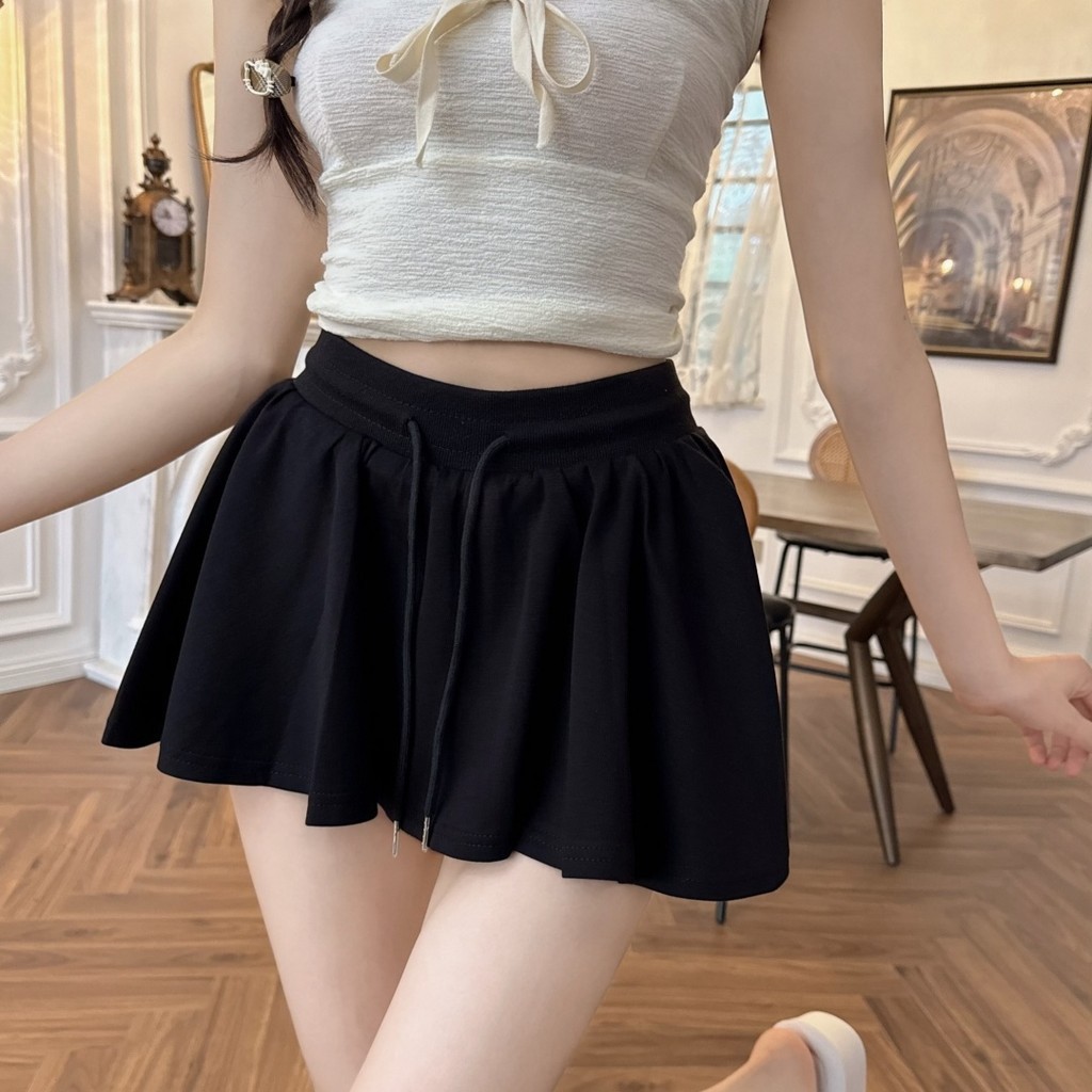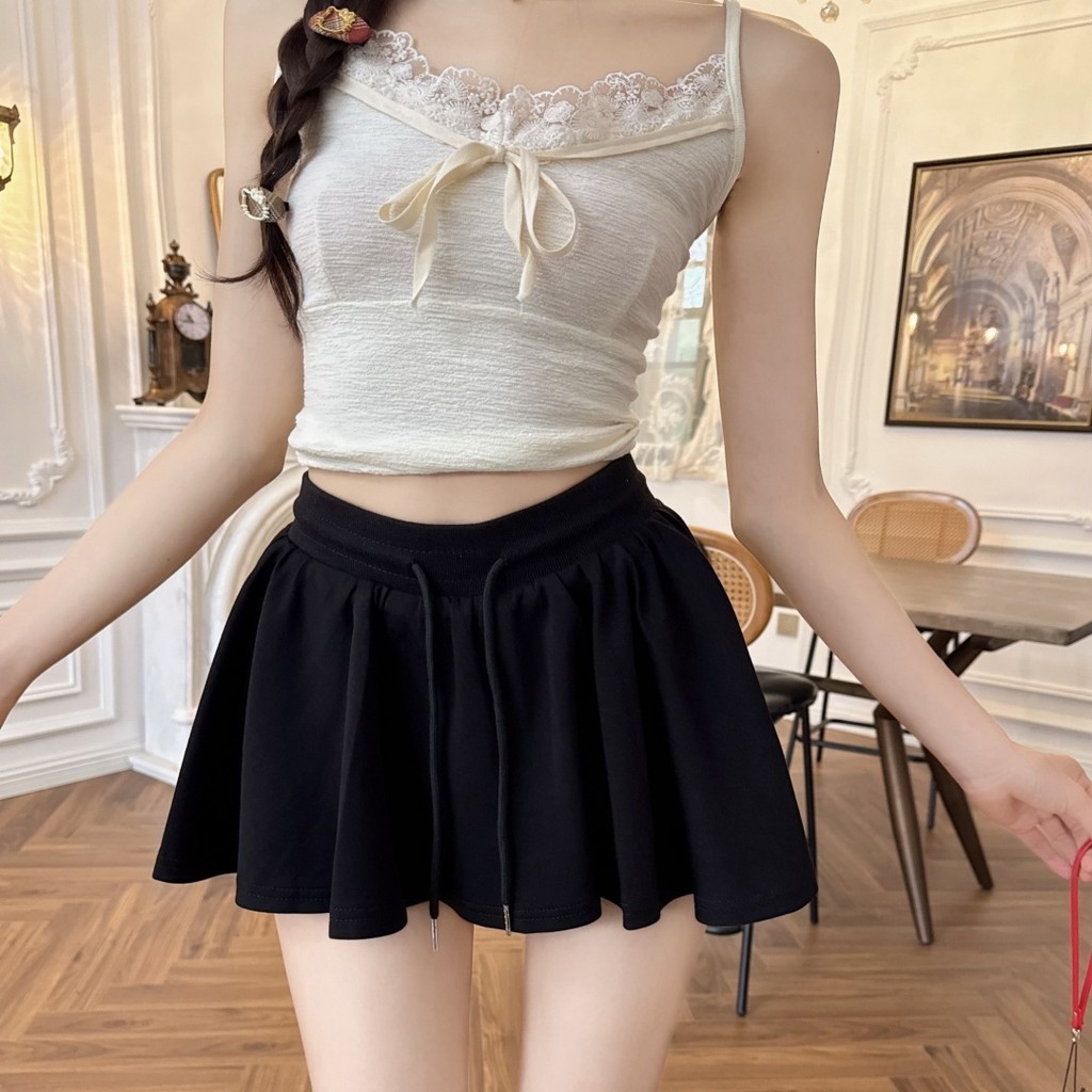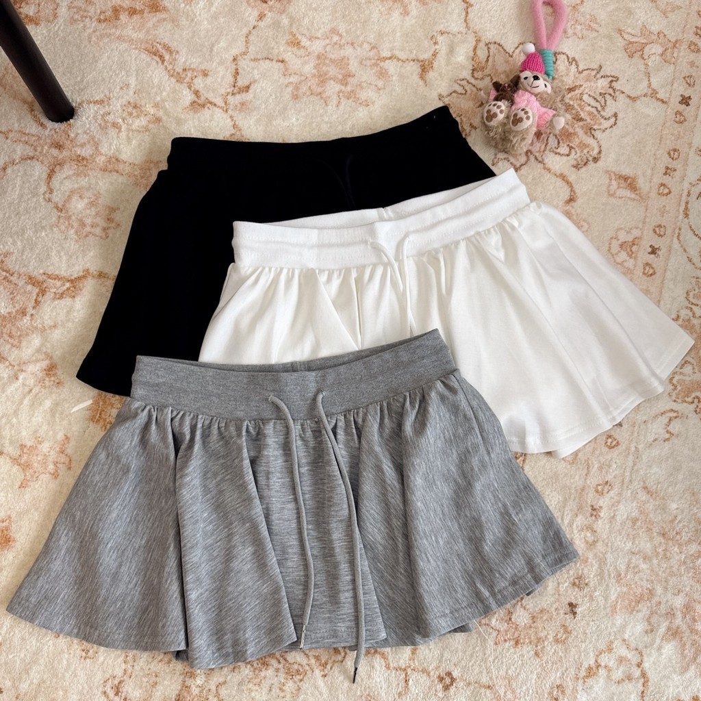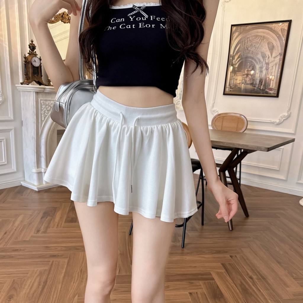 🎀Miss Kitty ใส่สบาย กระโปรงสั้นเชือกรูดกีฬาสีขาวสำหรับผู้หญิงฤดูร้อนเอวสูงแฟชั่นกระโปรงทรงเอ “FY2871”