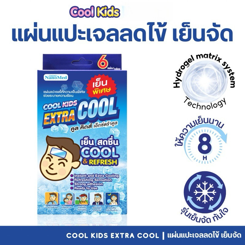 Cool Kids Extra Cool แผ่นแปะเจลลดไข้ เย็นมากพิเศษ หอม สดชื่น เย็นนาน 8 ชั่วโมง กล่อง 6 ชิ้น [DKP]