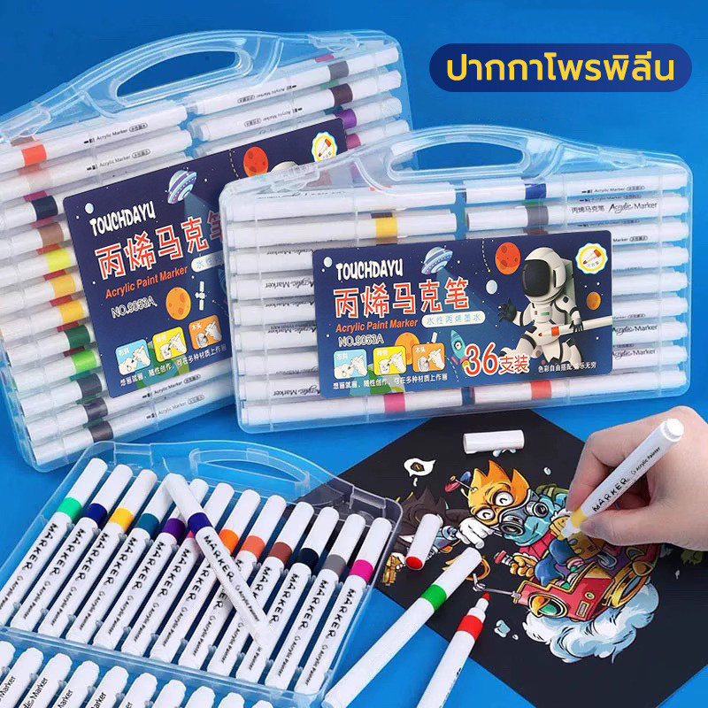 ปากกาสี ติดทน ปากกามาร์กเกอร์ 1กล่อง 12สี / 24สี / 36สี / 48สี เขียนได้ทุกพื้นผิว