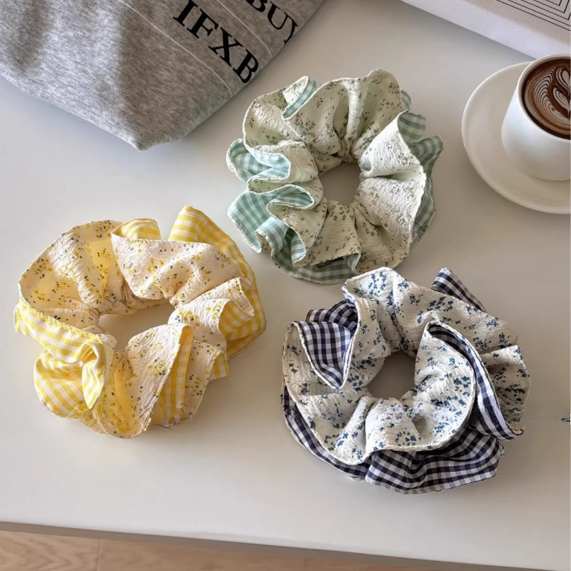 เชือกผูกผมลายดอกไม้ พร้อมยางรัดผมและหางม้า เครื่องประดับผมแฟชั่น