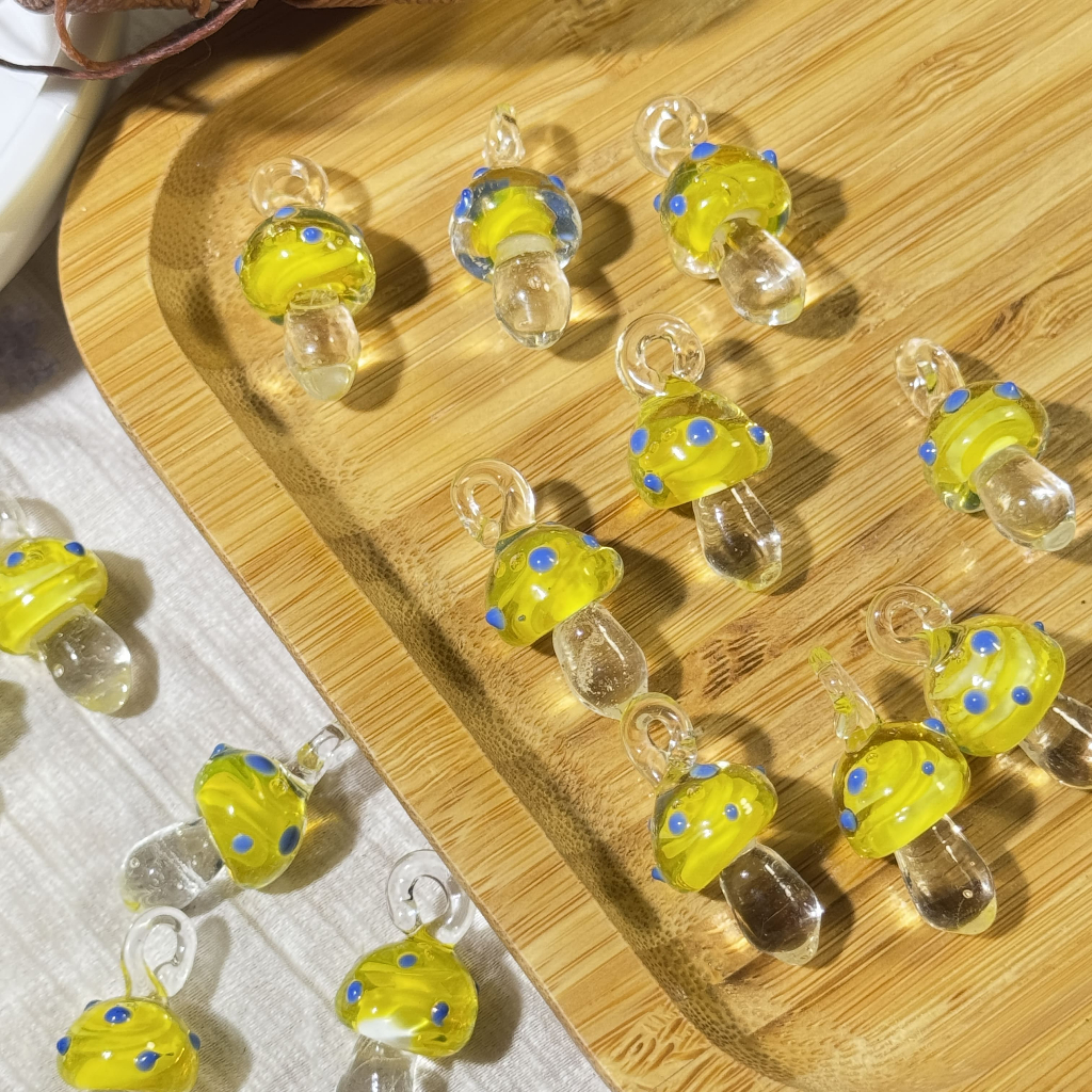 จี้แก้วรูปเห็ดสุดน่ารัก ดีไซน์โดดเด่นด้วยหมวกเห็ดสีเขียวลายริ้วและก้านเห็ดใสบริสุทธิ์ เสมือนหยดน้ำกลางป่า เคลือบเงาอย่างประณีต เพิ่มประกายแสงระยิบเมื่อกระทบแสงแดด ให้ความรู้สึกสดชื่น เหมือนเห็ดวิเศษในป่าลึกของเทพนิยาย