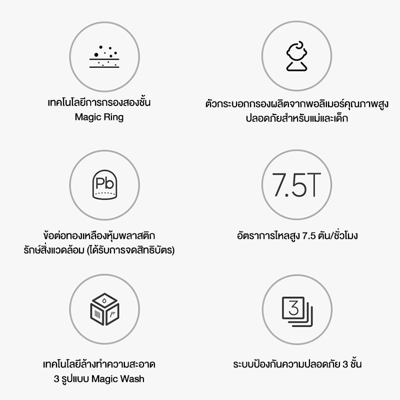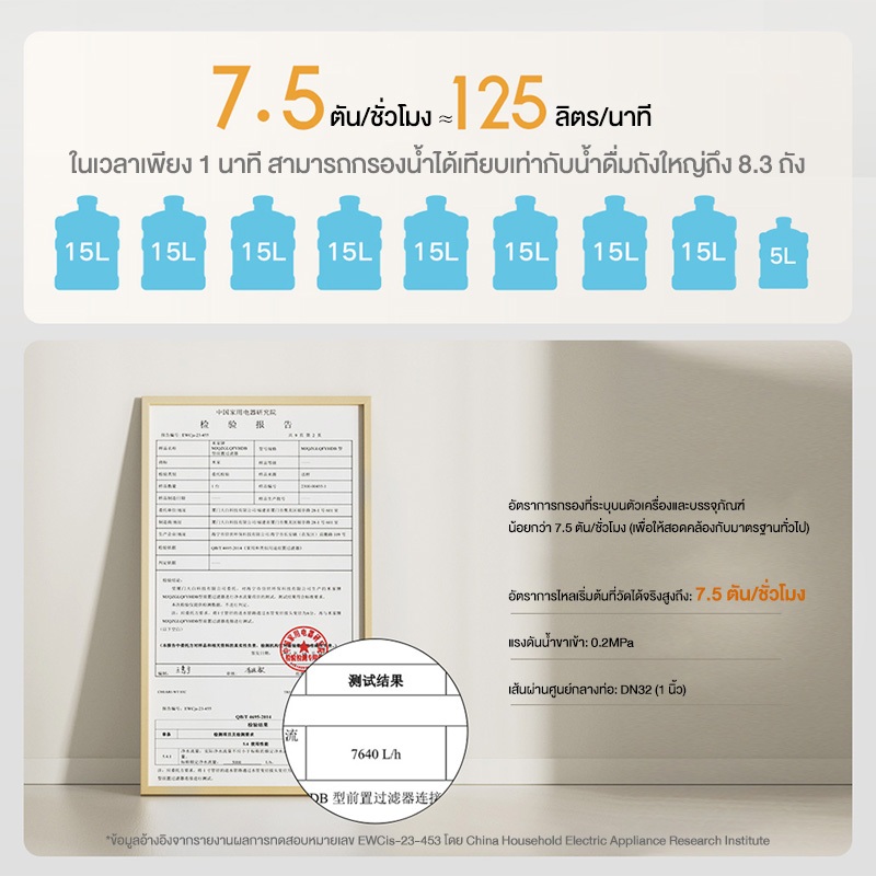 2) อัตราการไหลสูงถึง 7.5 ตัน / ชั่วโมงให้น้ำสะอาดที่ทรงพลังทั่วบ้าน