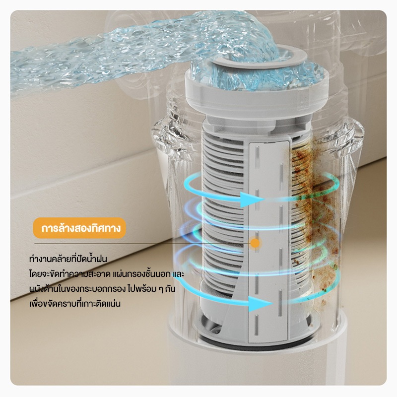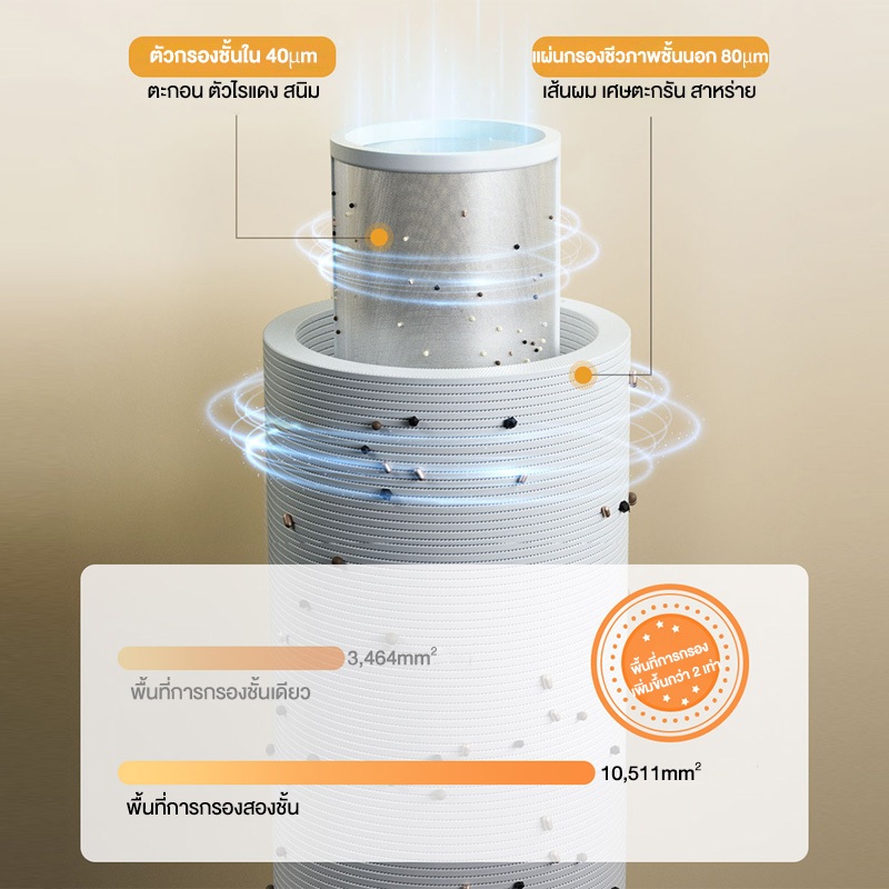1) เทคโนโลยีการกรอง 2 ขั้นตอนช่วยลดการอุดตันและลดความถี่ในการทำความสะอาด