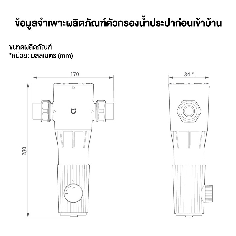 Xiaomi Mijia Pre-Filter ตัวกรองน้ำประปา ตัวกรองน้ำก่อนเข้าบ้าน อุปกรณ์สำหรับเครื่องกรองน้ำ ไม่มีสาร BPA ป้องกันการระเบิด และป้องกันแรงกระแทกจากน้ำ