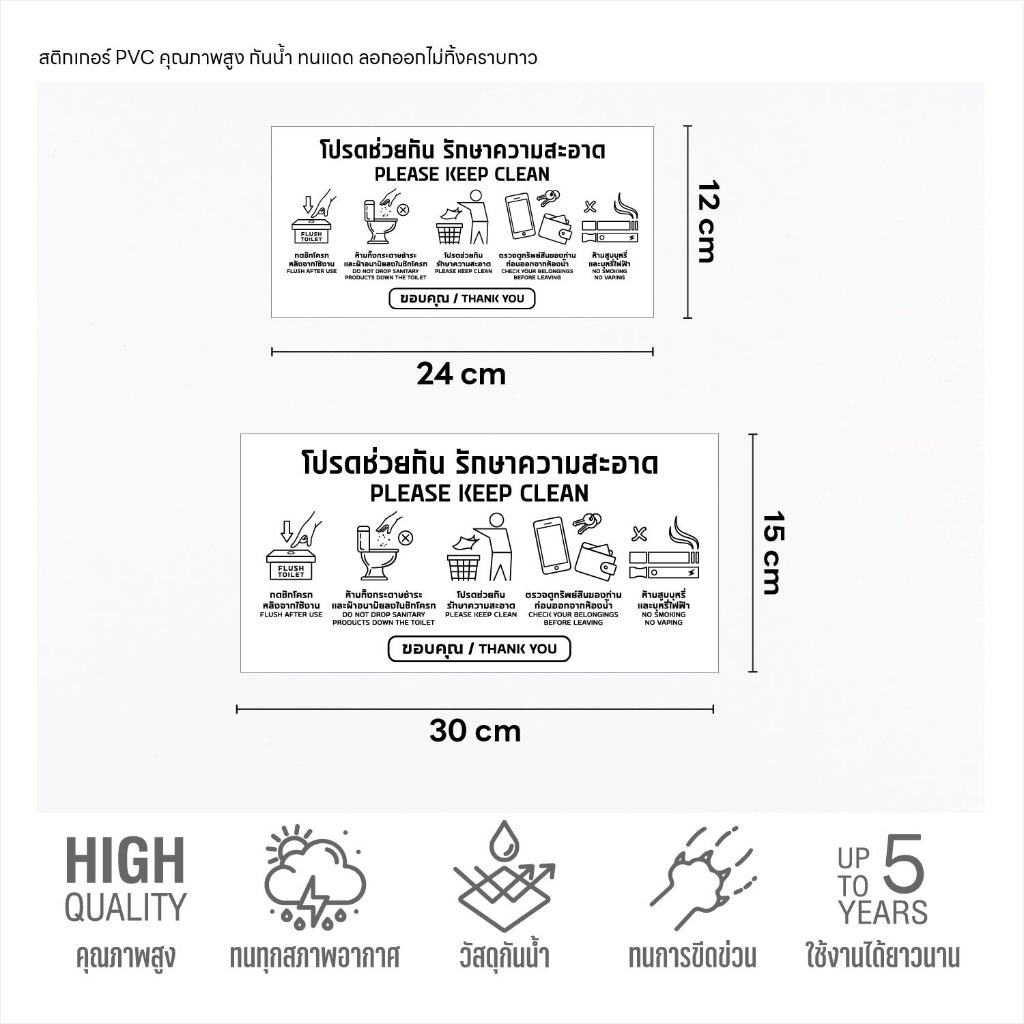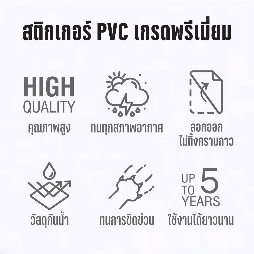 – กันน้ำ ทนแดด อายุงานยาวนาน สติกเกอร์เช็ดล้างทำความสะอาด