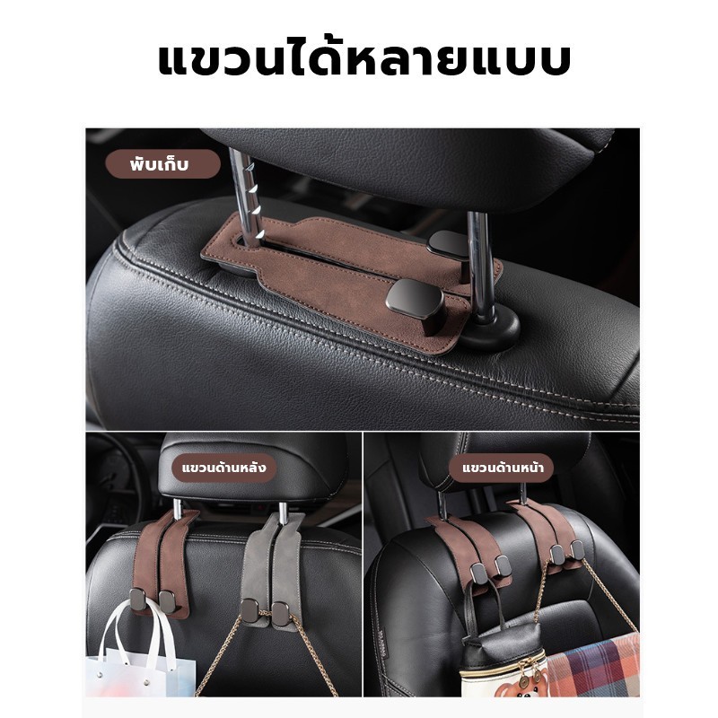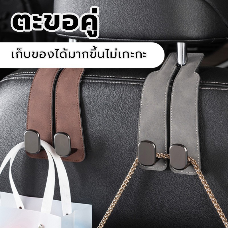 【Ready】ตะขอเกี่ยวรถยนต์ ตะขอคู่ ตะขอแขวนเบาะหลังรถยนต์ 2 ตะขอ แขวนพนักพิงศีรษะรถยนต์ สีดำ/สีเทา อุปกรณ์เสริมในรถยนต์