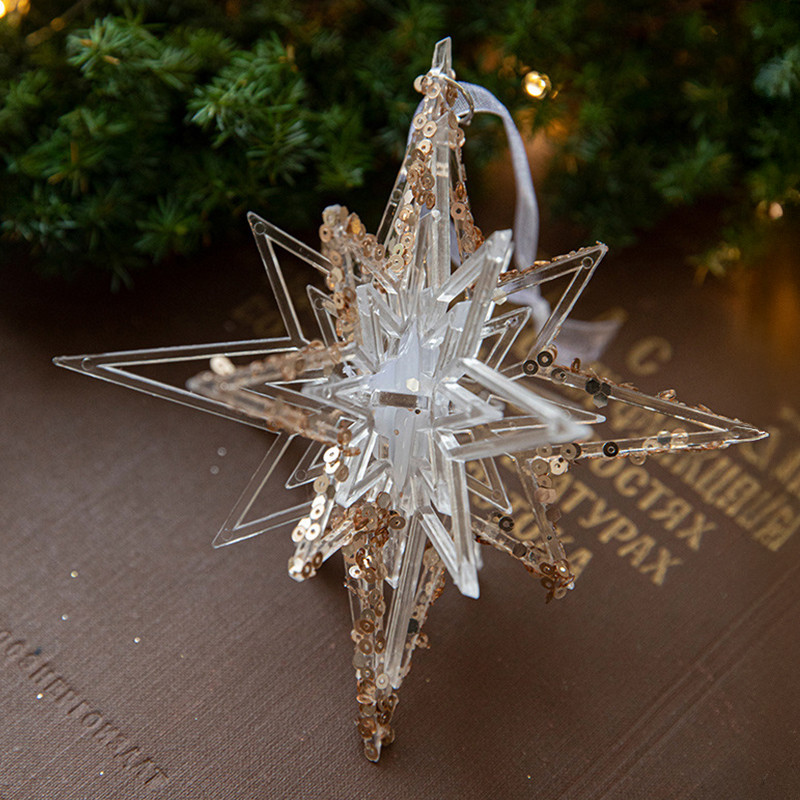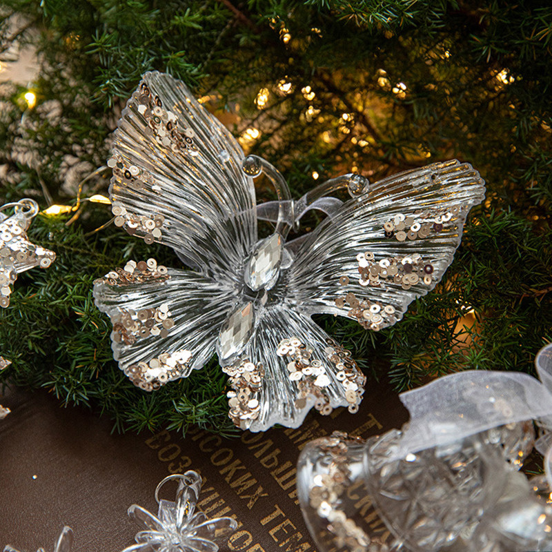 อุปกรณ์ตกแต่งคริสต์มาส จี้อะคริลิกประดับเลื่อม จี้เกล็ดหิมะใส อุปกรณ์ตกแต่งฉากต้นคริสต์มาส