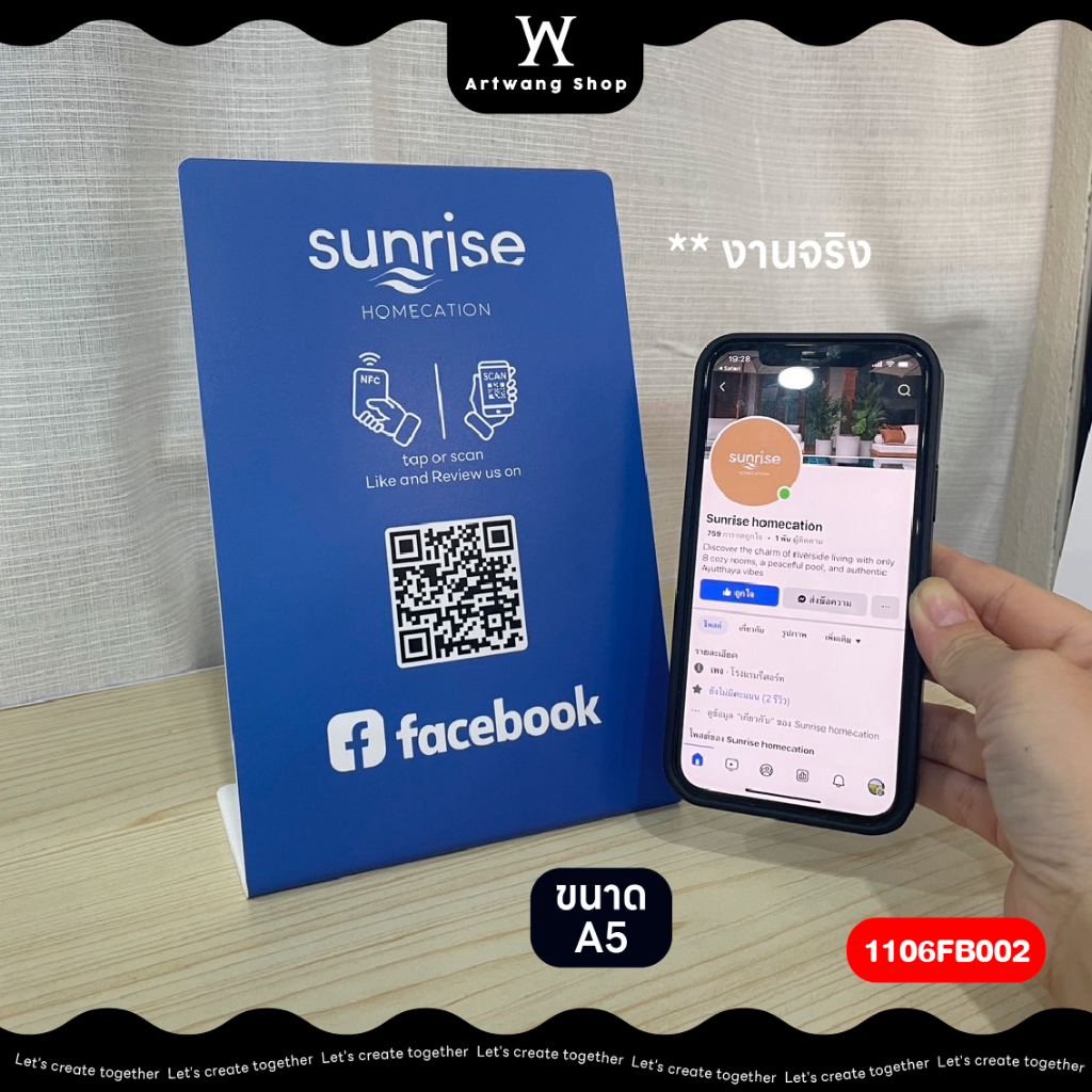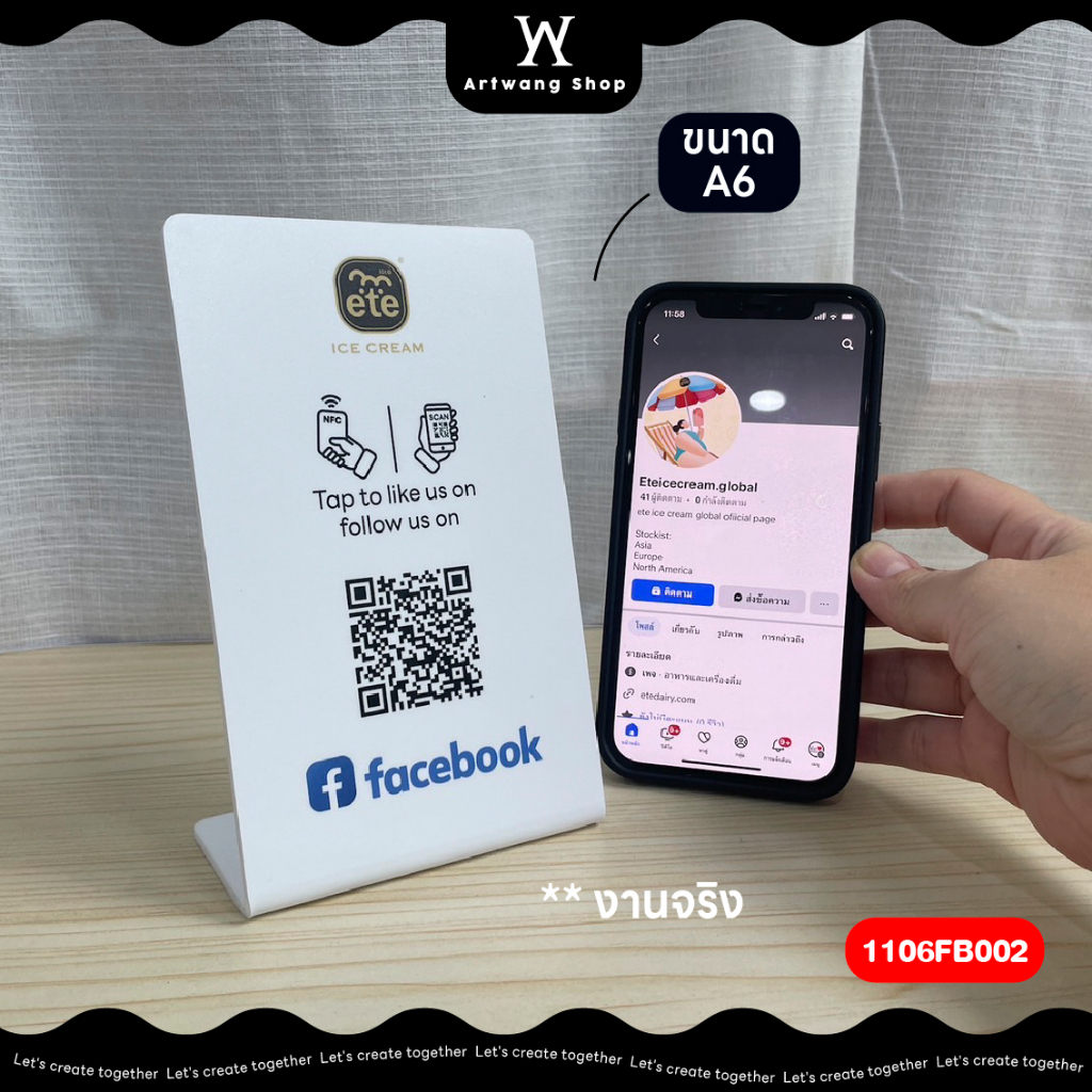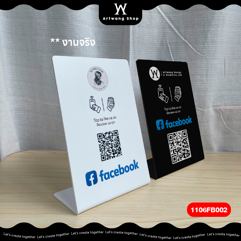 ป้าย NFC Facebook เฟสบุ๊ค แบบฐานเอียง หน้าเดียว ป้ายไลท์เพจ รีวิวเพจ ใส่โลโก้ใส่คิวอาร์โค๊ดได้