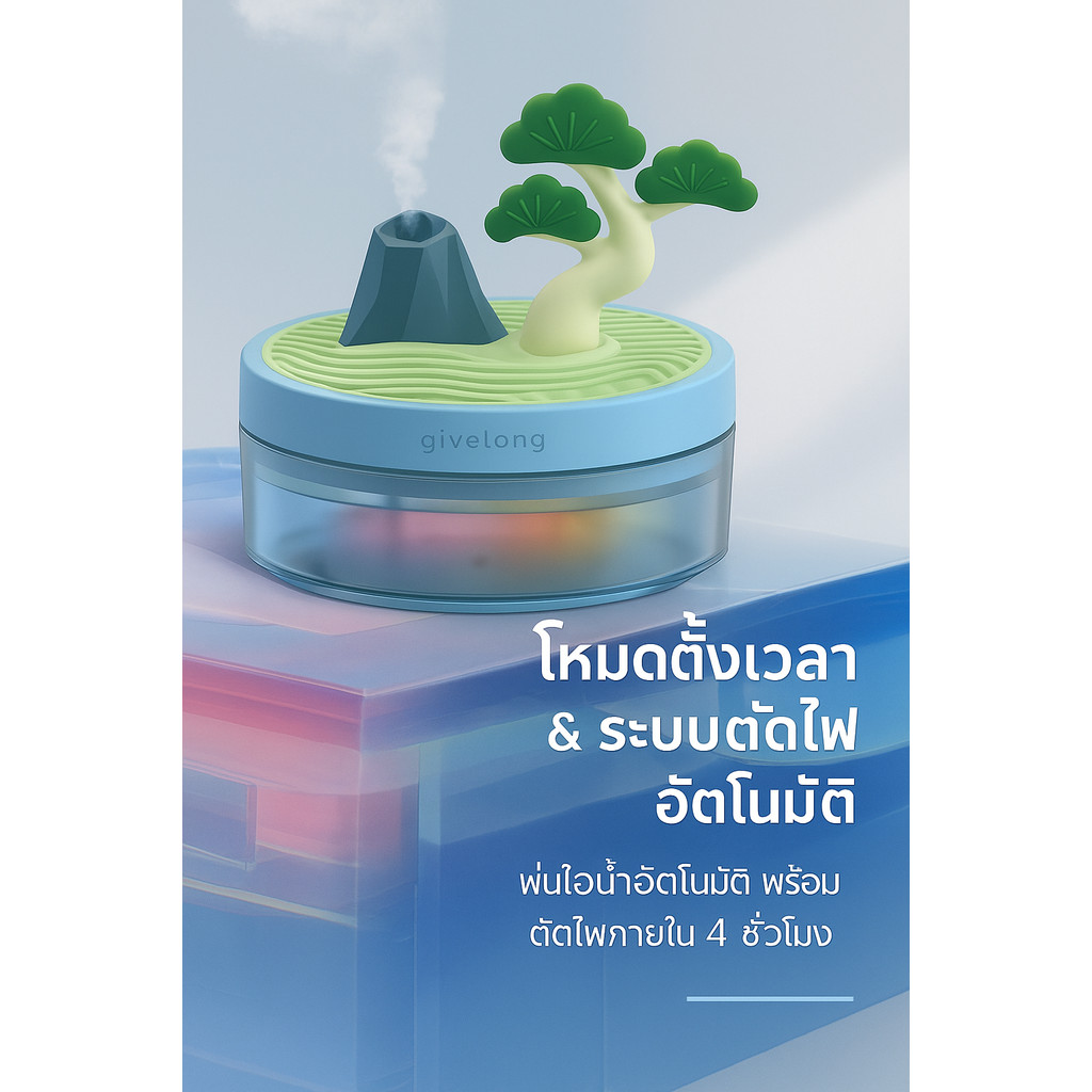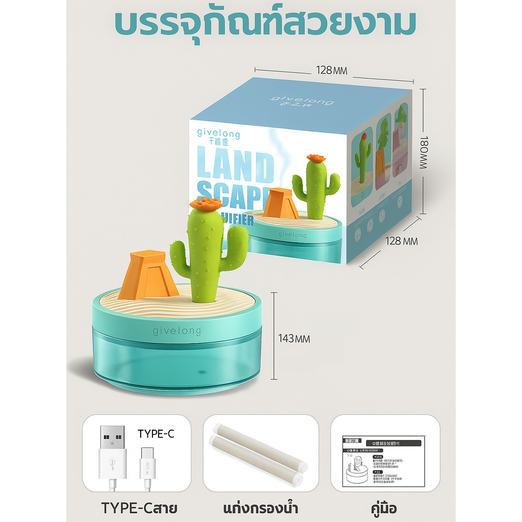 เครื่องเพิ่มความชื้นในอากาศ USB Humidifier ทรงต้นไม้ Landscape ดีไซน์น่ารักมินิมอล สำหรับห้องนอน ห้องทำงาน มีไฟ LED