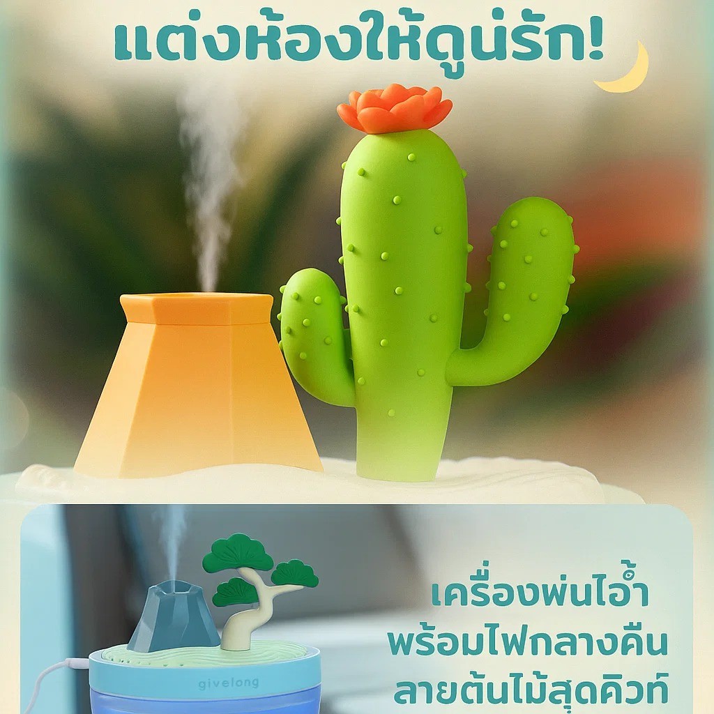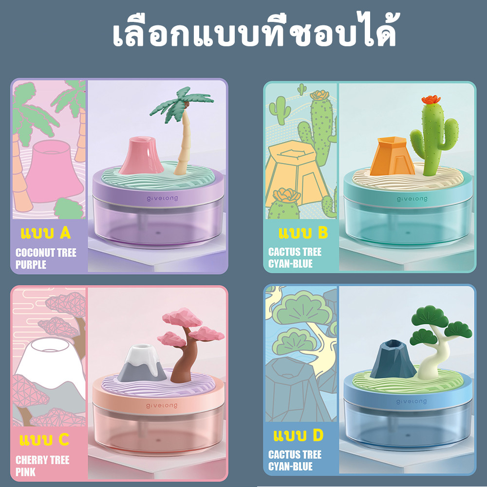 หยิบใส่ตะกร้าเครื่องเพิ่มความชื้นในอากาศ USB Humidifier ทรงต้นไม้ Landscape ดีไซน์น่ารักมินิมอล สำหรับห้องนอน ห้องทำงาน มีไฟ LED