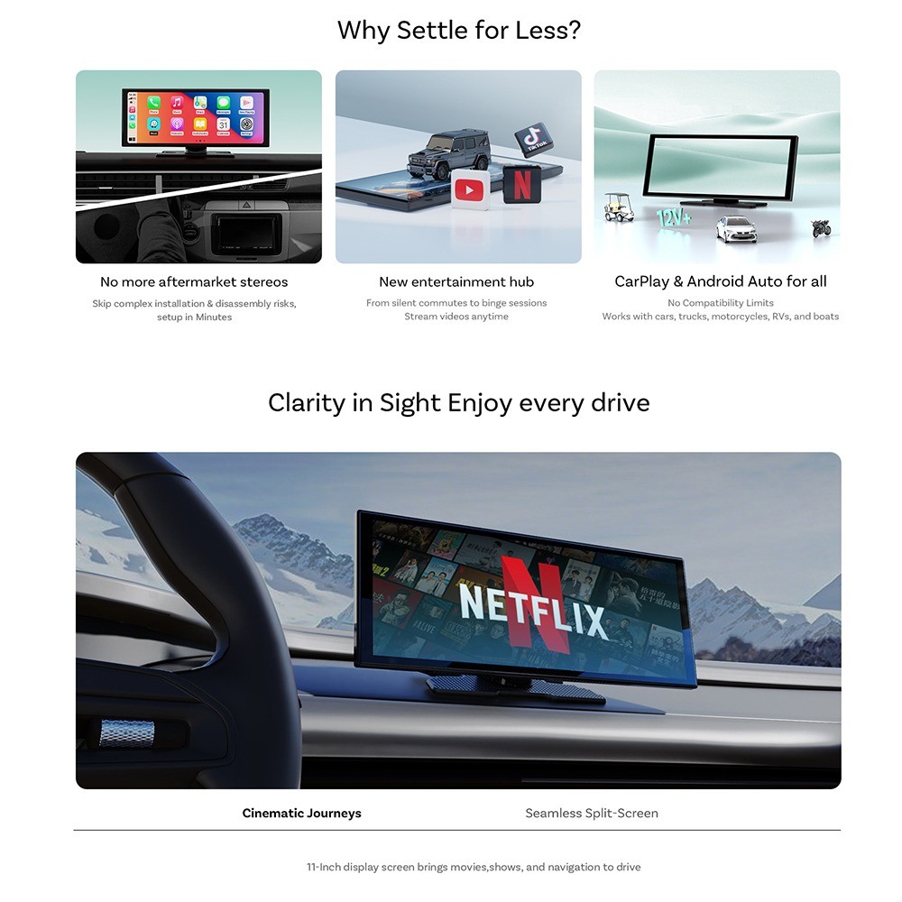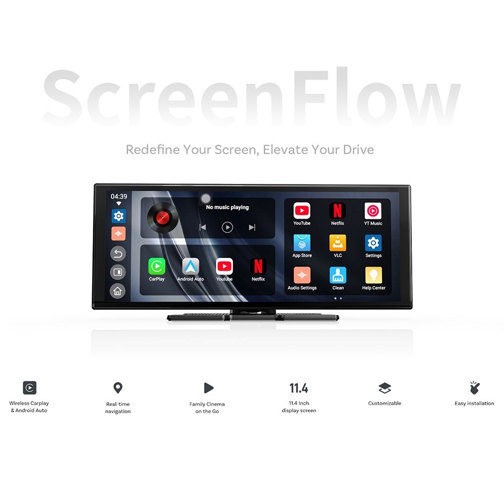 Ottocast 11.4 นิ้ว Universal Wlireless Carplay Android Auto หน้าจอรถเครื่องเล่นวิทยุมัลติมีเดียวิดีโอแยกหน้าจอสําหรับ Youtube Netflix