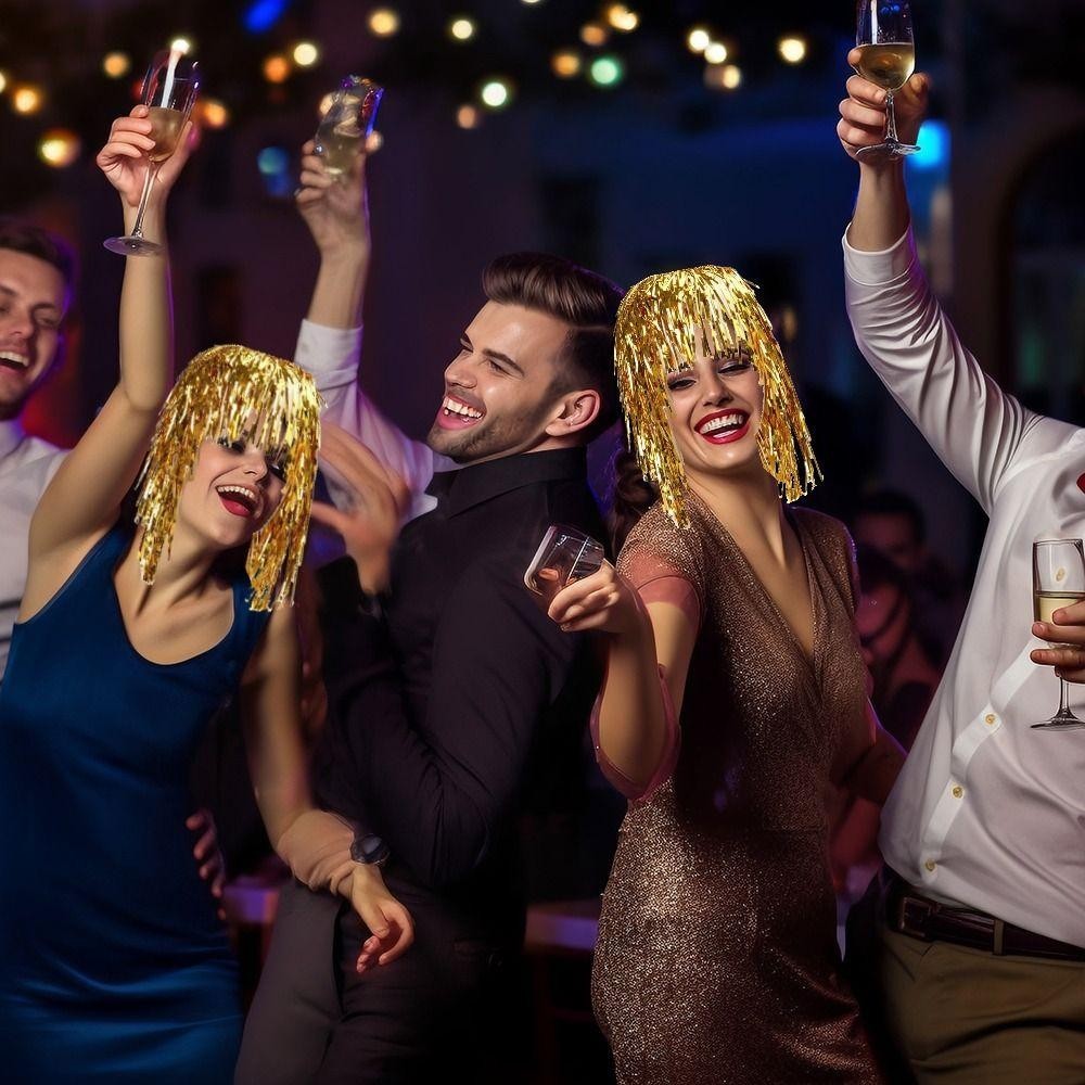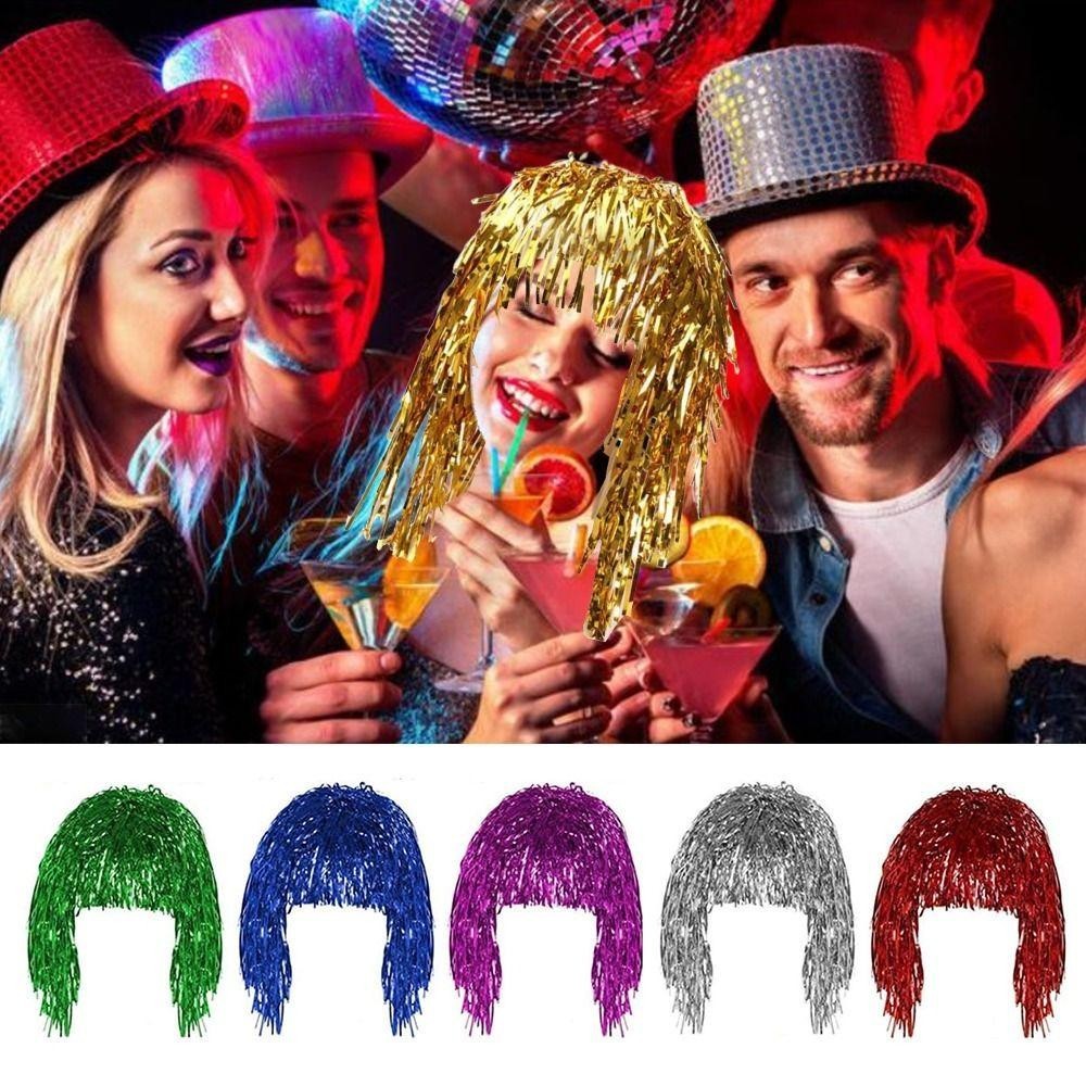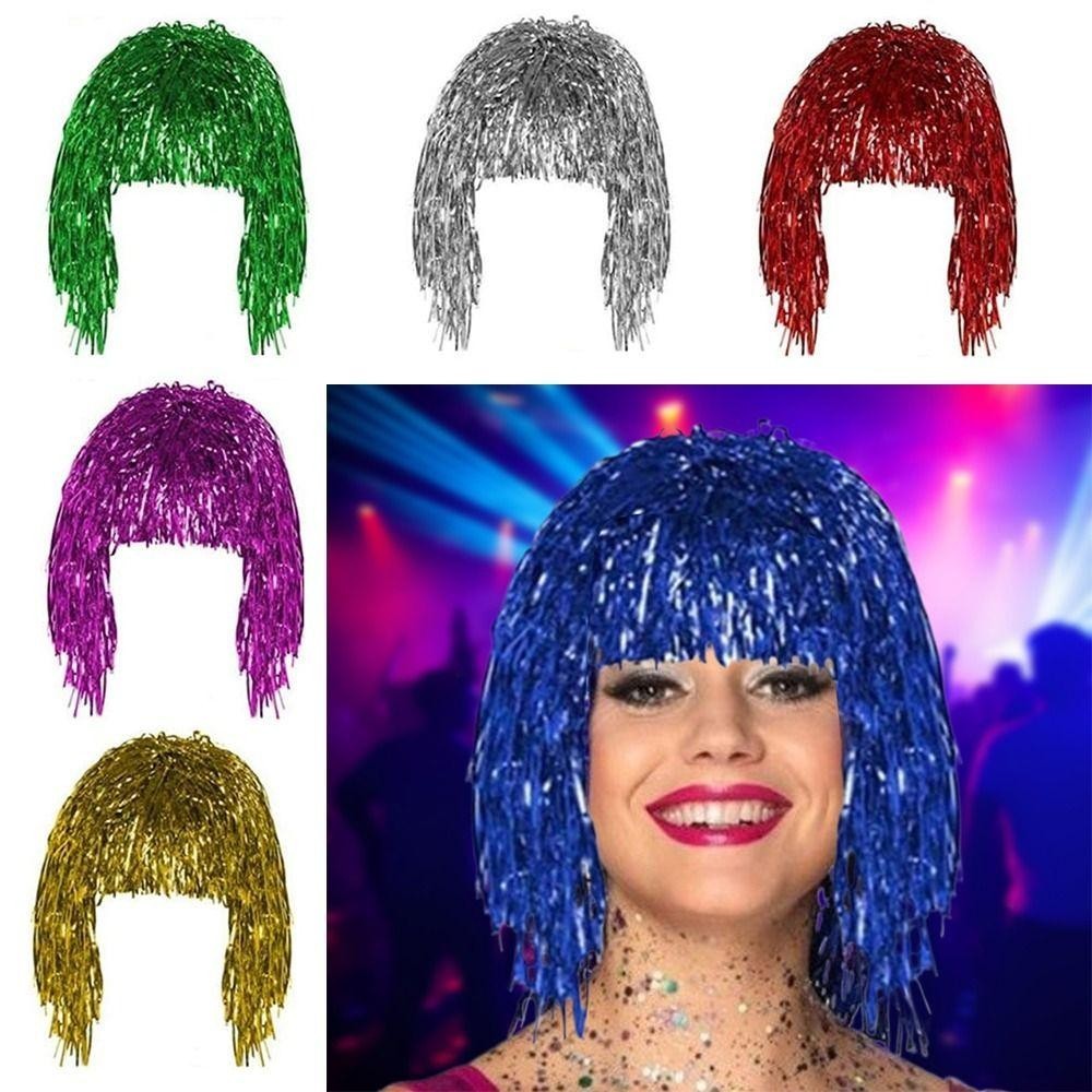 ZHAOX Party วิกผม,โลหะเงาเครื่องแต่งกายคอสเพลย์เต้นรํา Hairpiece,แฟชั่นอลูมิเนียมฟอยล์พลาสติกตกแต่งวิกผมผม