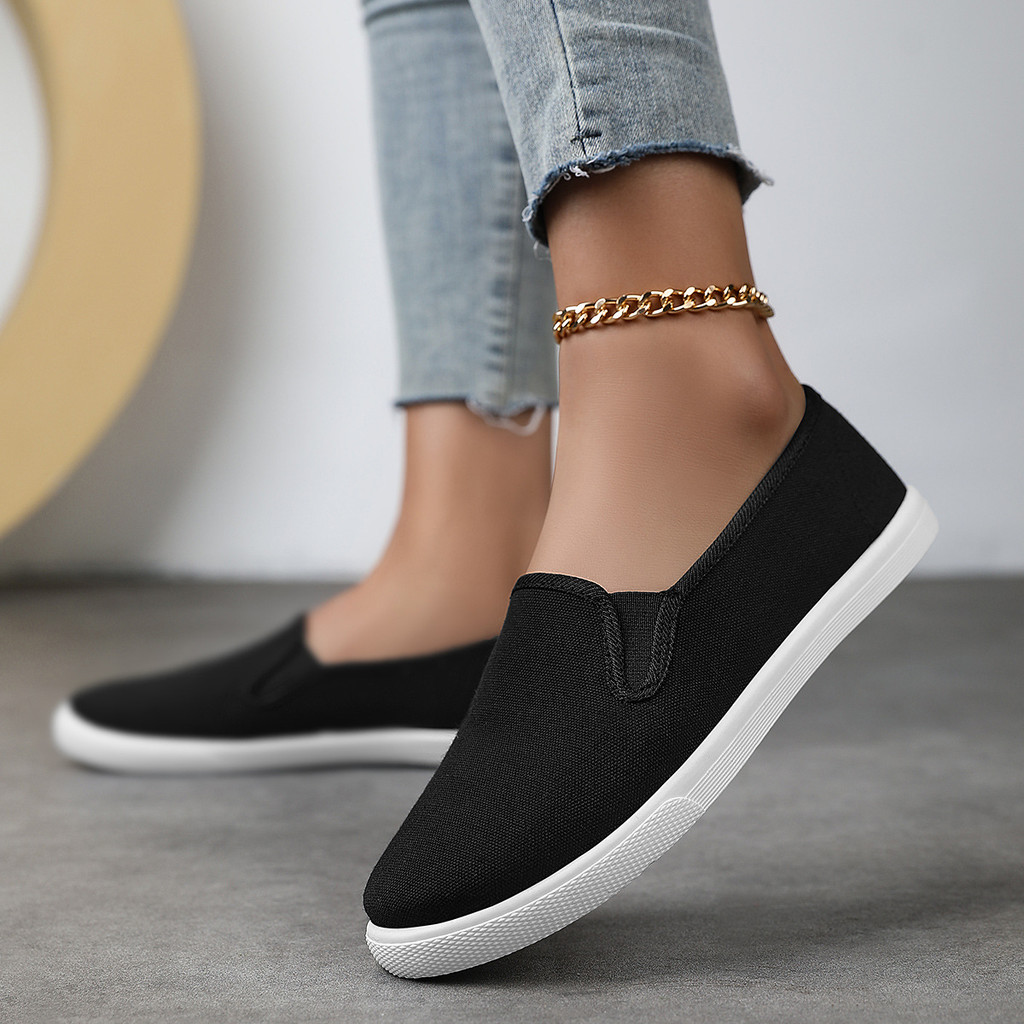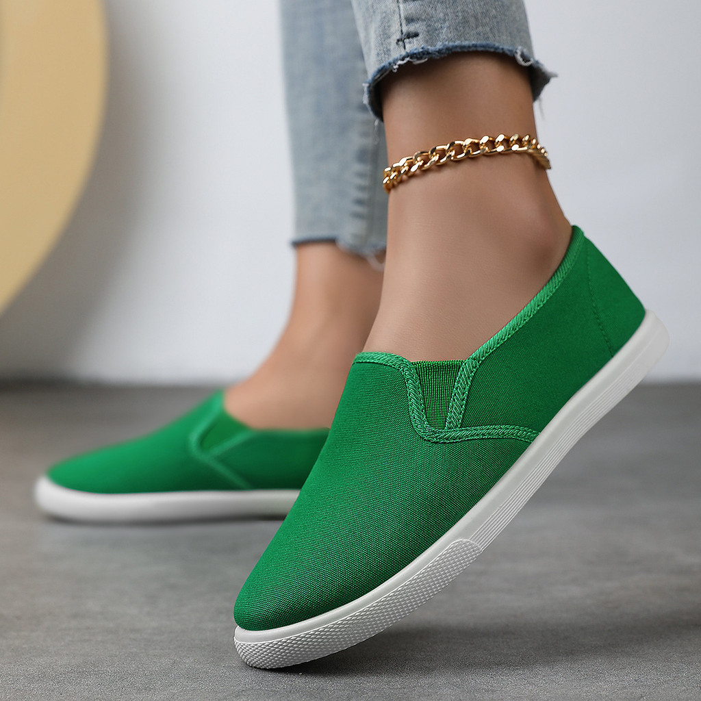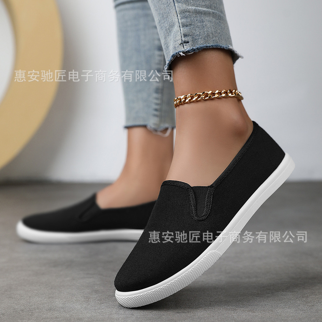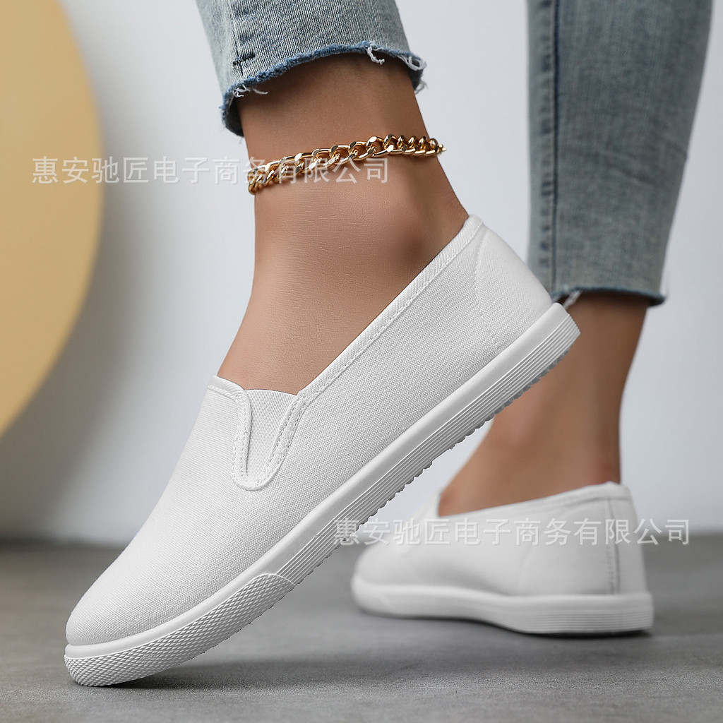 เวอร์ชั่นเกาหลี Flat-Soled Flat-Soled Slip-On รองเท้าผู้หญิงรองเท้าสีขาวผ้าใบสไตล์ใหม่ผู้ชายผู้หญิงรองเท้า Flat-Heeled แฟชั่น
