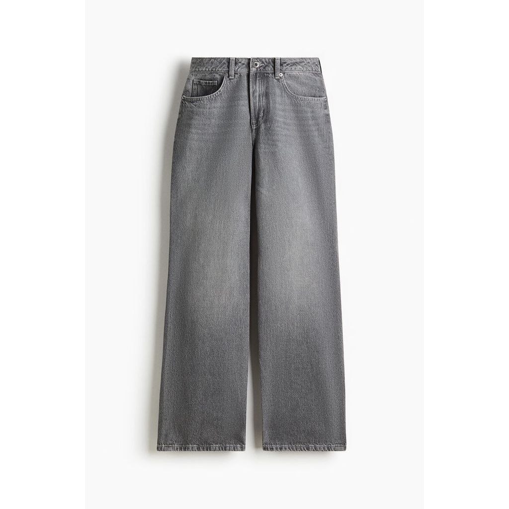 5-pocket jeans in washed cotton denim with a high waist, zip fly and button and wide, straight legs.