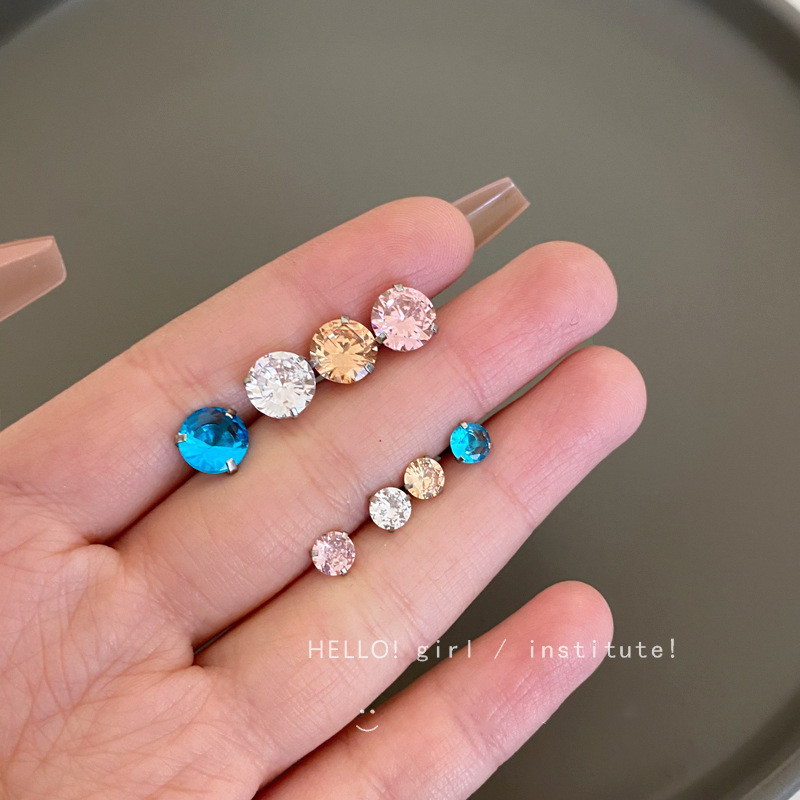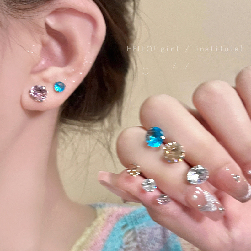 ต่างหูสีเพทายหัวซีประดับเพชรกระพริบ สำหรับผู้หญิง สไตล์ใหม่ปี 2024